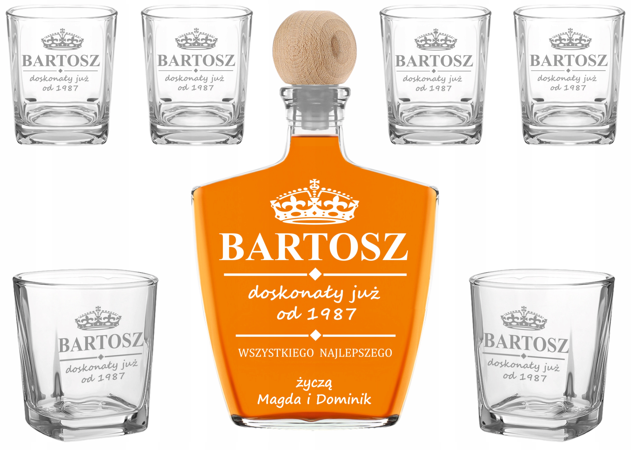 Графин, 6 стаканов, 6 стаканов для виски с индивидуальной гравировкой, все упаковано в деревянную коробку с пенопластовым наполнением.