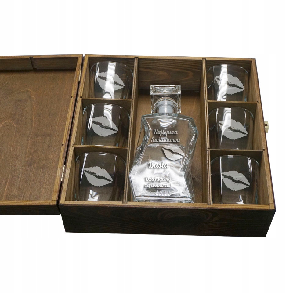 в стоимость включена гравировка на лицевой стороне графина, лицевой стороне коробки, а также на лицевой стороне обоих бокалов.