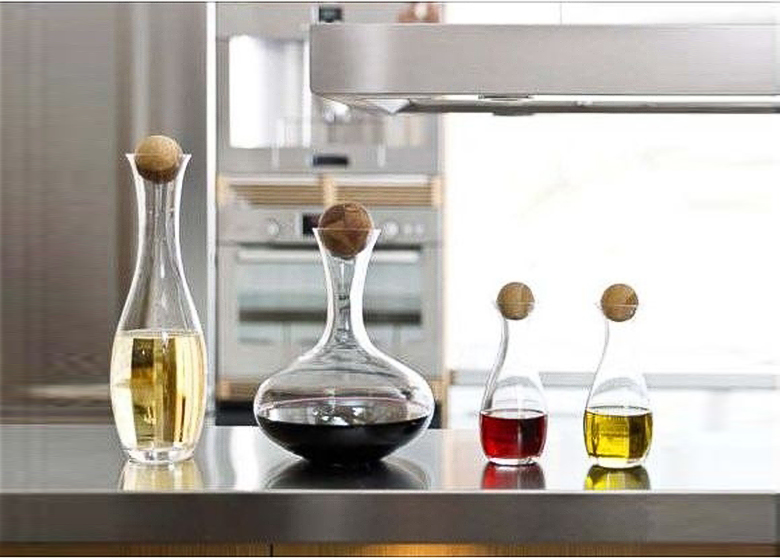 Графин для вина с дубовой пробкой, благодаря широкому основанию может использоваться для декантации (аэрации вина)