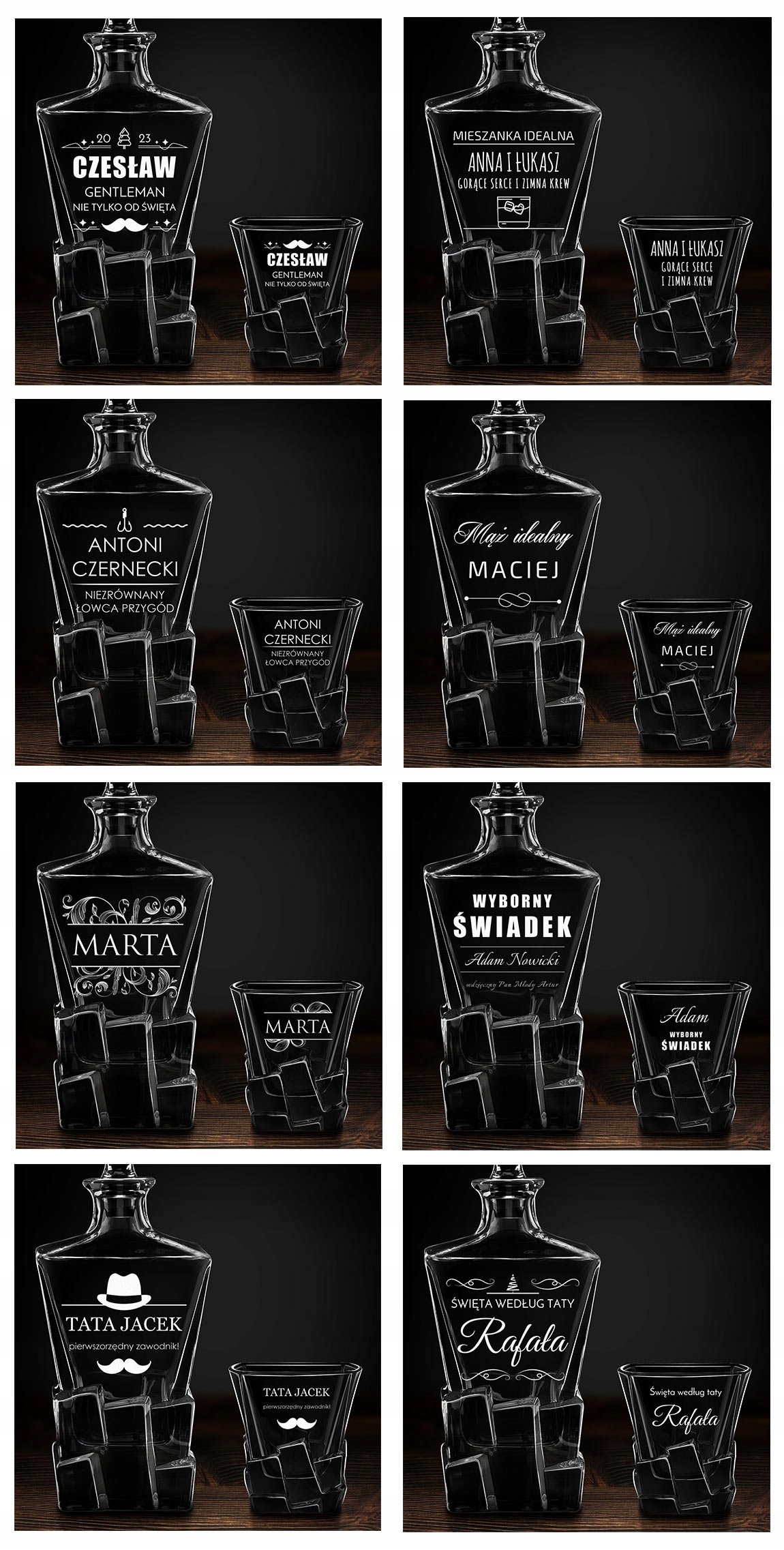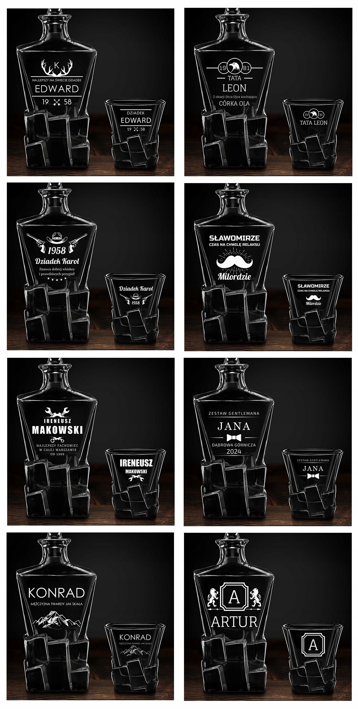 Не знаете, что подарить ценителю виски на особыйсобытие? Персонализированный графин и шесть бокалов из высококачественного стекла – отличный подарок любителю виски. Этот оригинальный графин, кажется, стоит на далеком леднике. Кубики льда, украшающие этот уникальный графин, способны визуально охладить хранящийся напиток. Шесть входящих в комплект рюмок являются уникальным дополнением к набору и служат подарком, который можно использовать во время мужских встреч и за его пределами. Уникальное посвящение, выполненное в технике лазерной гравировки, наверняка станет интересным дополнением к практичному подарку. Классическая стеклянная структура добавит красоте подарку. Предмет с личным посвящением станет уникальным и в то же время практичным сувениром для вашего близкого человека на долгие годы. Сегодня выберите уникальный подарок для нее, для него или для пары и измените дизайн гравировки!< /п>