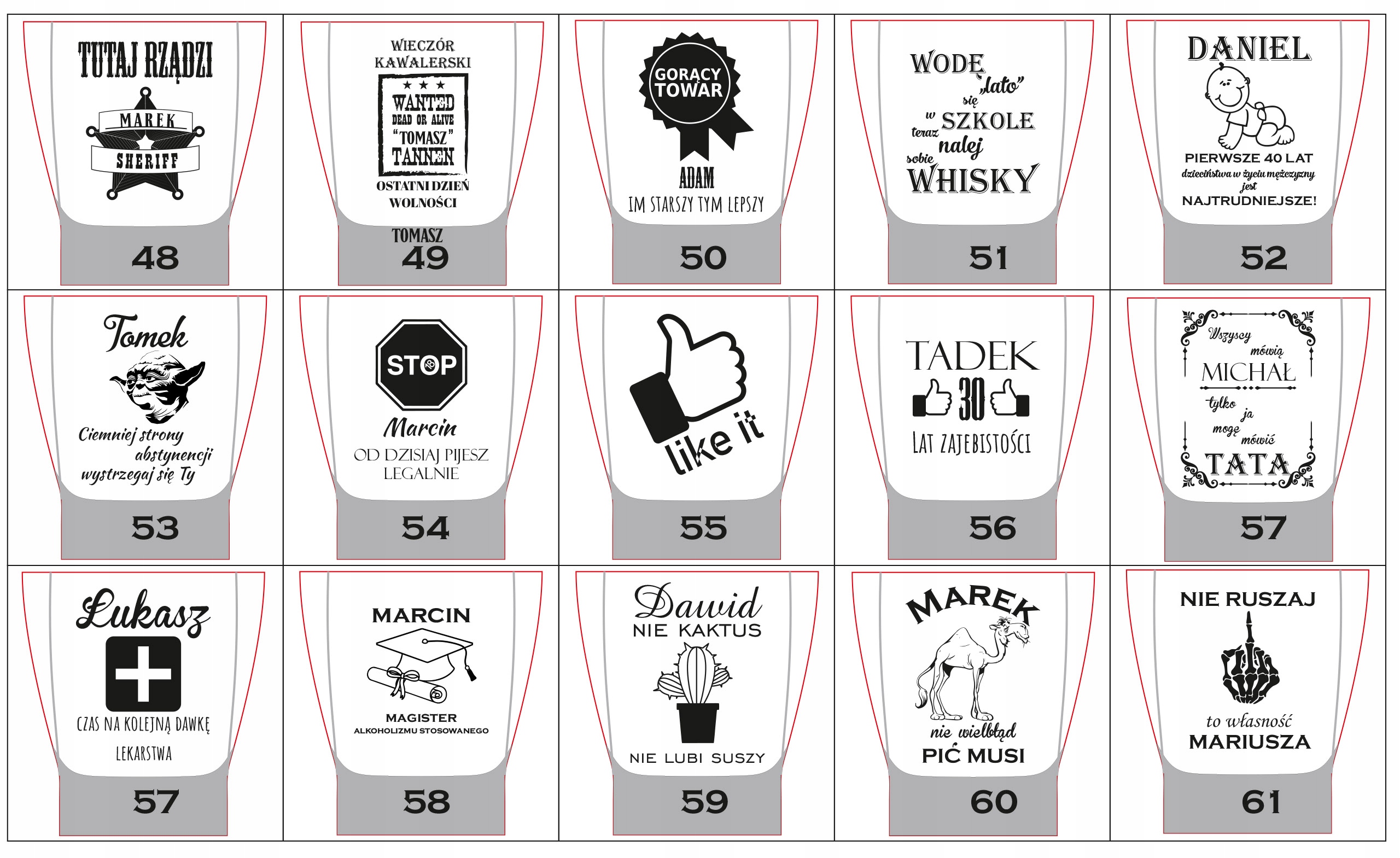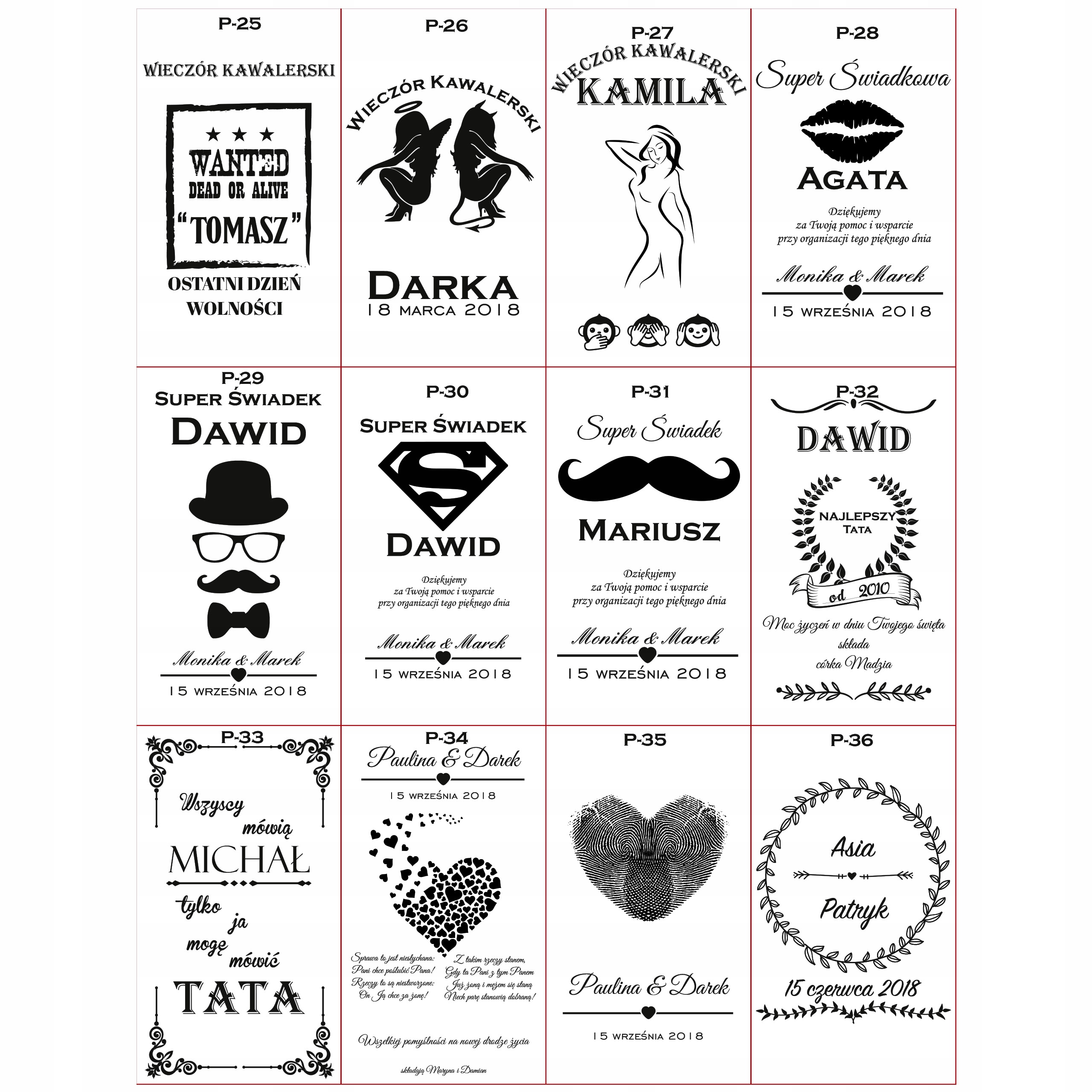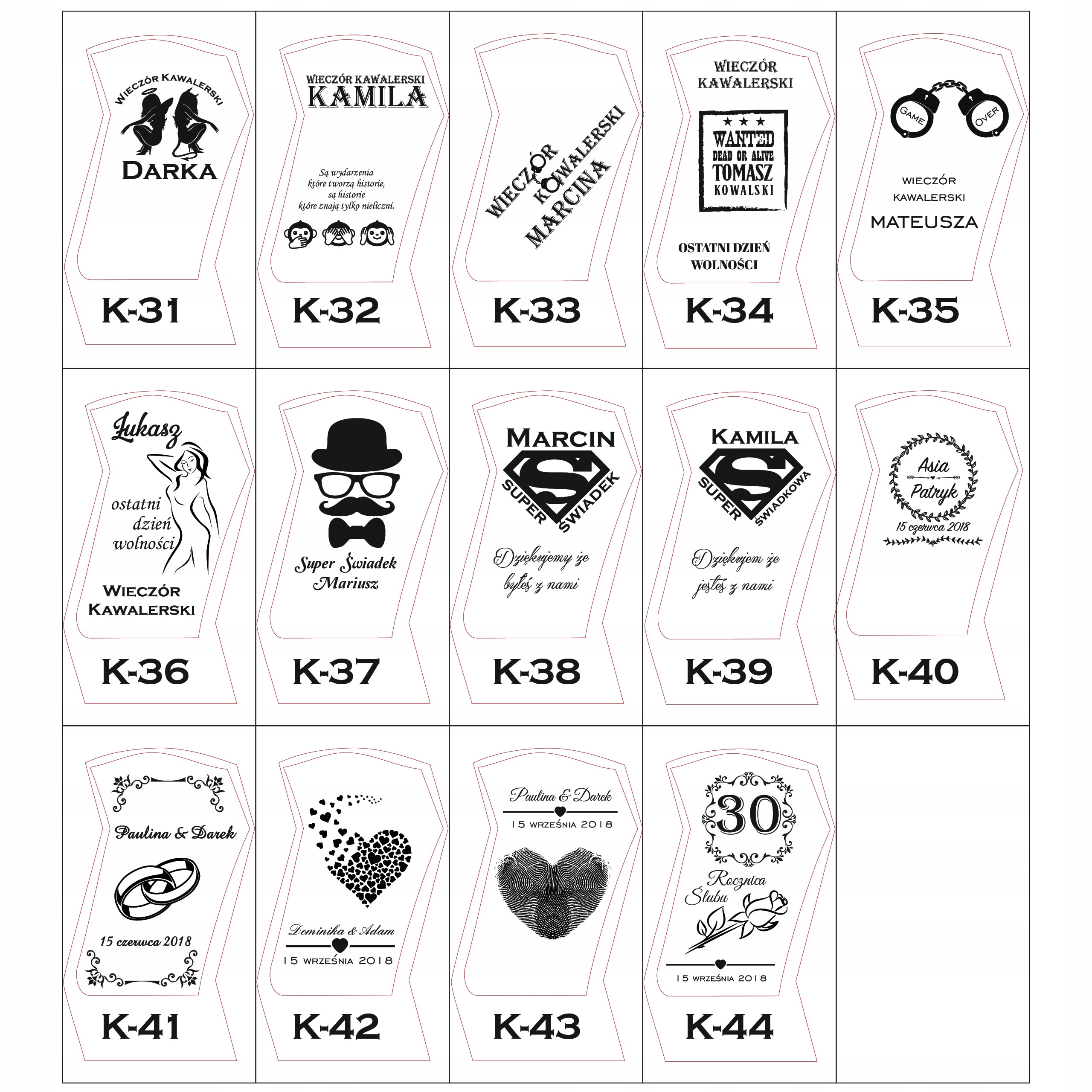 Каждый элемент может содержать индивидуальную гравировку