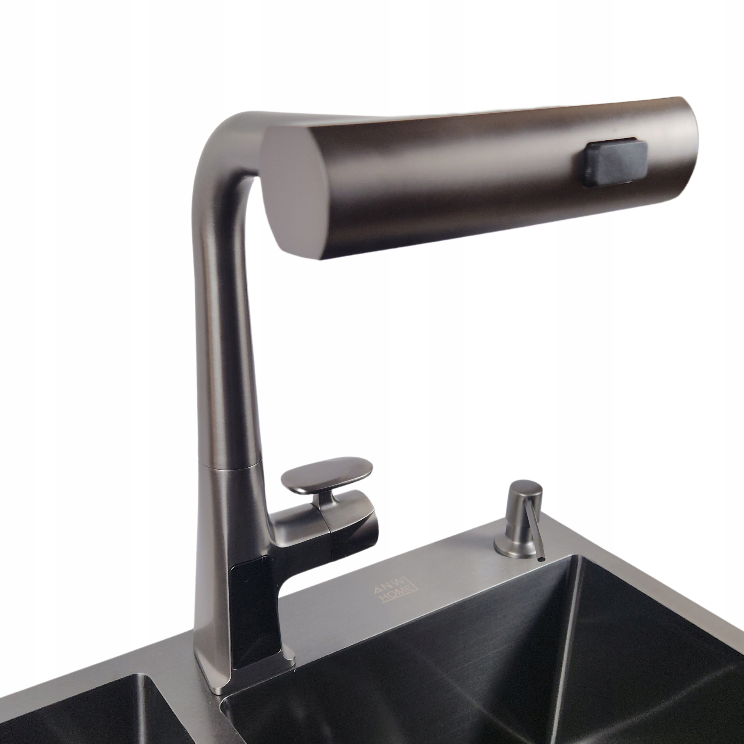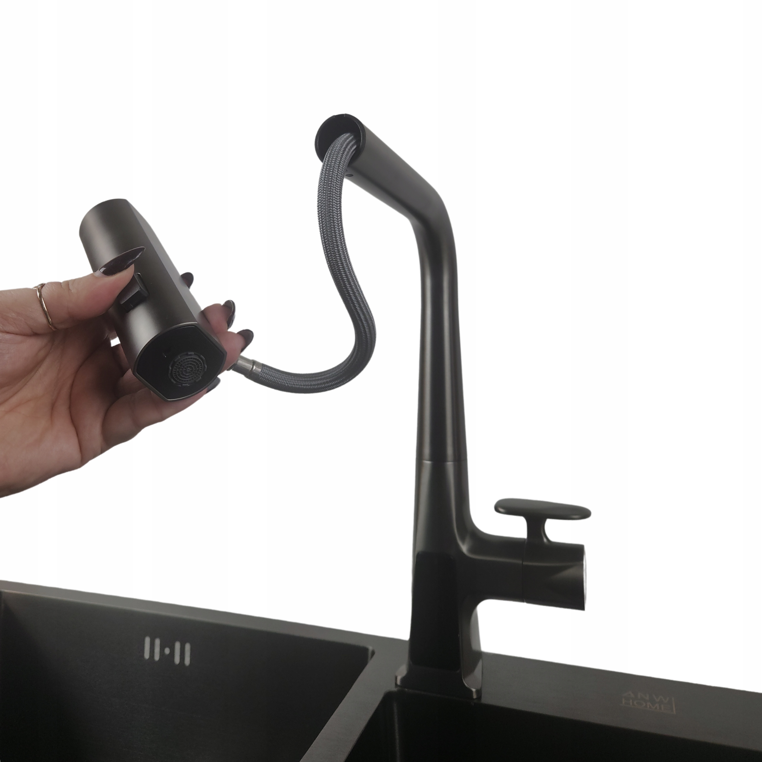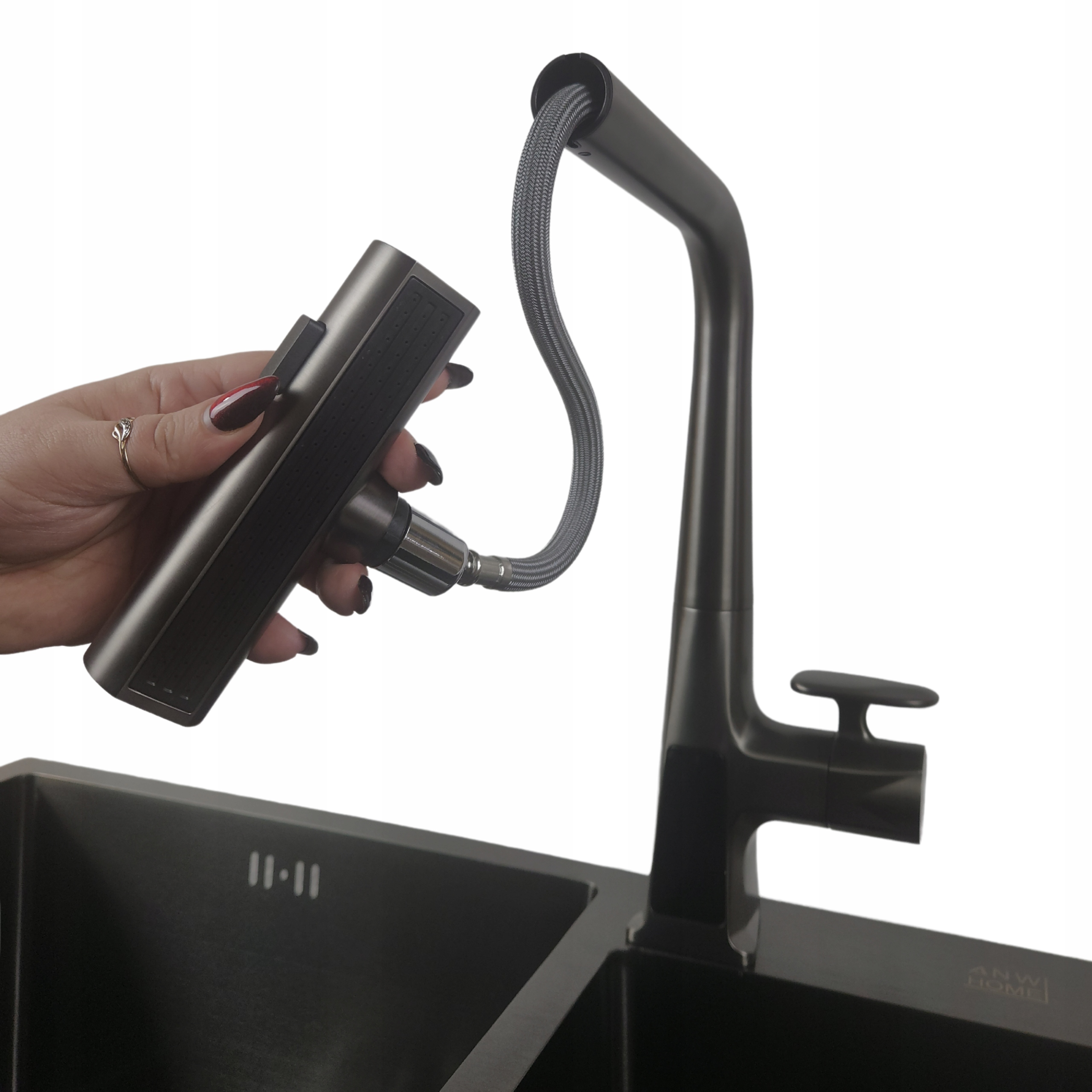 Графит кухонная батарея с носовым носом и водопадом + светодиодом.