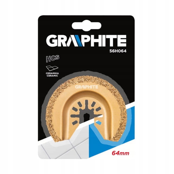 Получищенная экрана для резки графитовой керамики (ссылка 56H064) диаметром 64 мм имеет набережную карбида вольфрама. Это обеспечивает точную резку настенных плиток на прямой линии и удаляет суставы с помощью мультининового графита