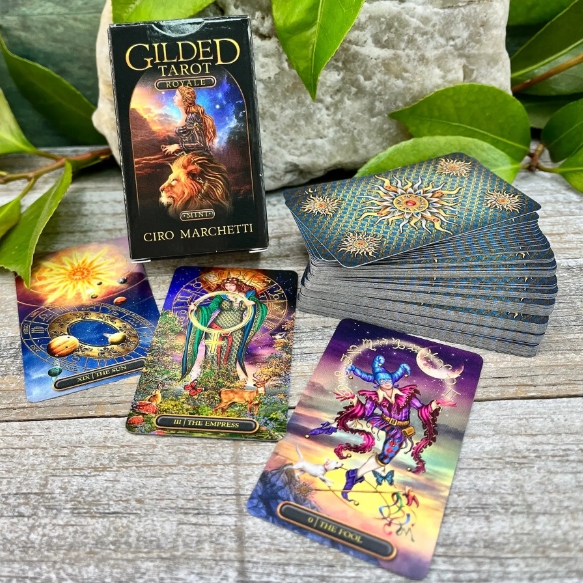 Эта карманная версия обеспечивает удобство и портативность, позволяя всегда иметь при себе любимые карты Таро. Независимо от того, где вы находитесь, вы можете воспользоваться мудростью и вдохновением Gilded Tarot Royale в любое время и в любом месте.