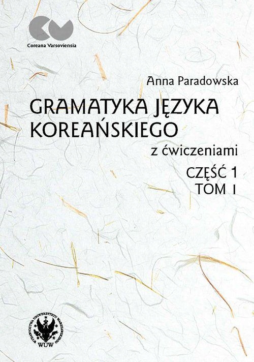 Академический учебник для изучения корейского языка с практическими упражнениями, комментариями и словарями, предназначенный для студентов, изучающих корееведение или изучающих корейский язык на университетском уровне. Лингвистический материал, на котором основана лекция по грамматической системе корейского языка, иллюстрирует правила употребления грамматических форм и выражений, грамматических категорий и синтаксических закономерностей. Третий том серии «Coreana Varsoviensia». Грамматика корейского языка с упражнениями. Часть I, Том 1 Академический справочник по корейскому языку с практическими упражнениями, комментариями и глоссариями для студентов, изучающих корейский язык, или тех, кто изучает корейский язык на университетском уровне. Языковой материал, используемый для объяснения системы корейского языка, иллюстрирует грамматические правила, фразы, грамматические категории и синтаксические модели. Книга является третьим томом серии "Coreana Varsoviensia".