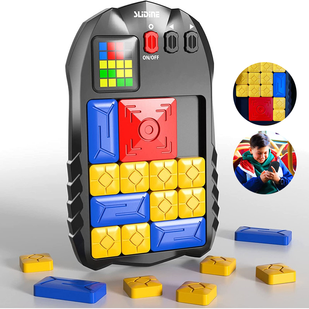 - 🔖 3 цветовые ползунки, включая красные, синие и желтые, из которых есть только один красный ползунок. Согласно шоу на экране, цель состоит в том, чтобы переместить большой красный блок в нижнюю среднюю область доски. Существует 7 уровней сложности, которые можно разделить на 7 уровней от новичка до эксперта в зависимости от количества проходящих уровней и потраченного времени. Вставьте аккумулятор (необходимы 2 батареи AA, они не включены), светодиодный экран будет освещаться после запуска. Затем, в зависимости от дисплея, игрок может выбрать желаемое количество уровней, чтобы переместить слайдер. Игровая машина есть магнитная достопримечательность, которая может привлечь ползунники. Gra Jest Interesująca I Może ćwiczyć zdolnoś myślenia i rozumowania graczy.