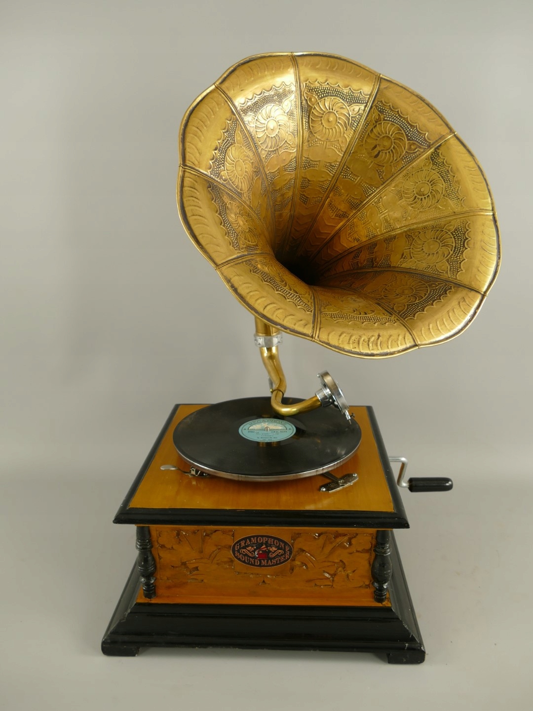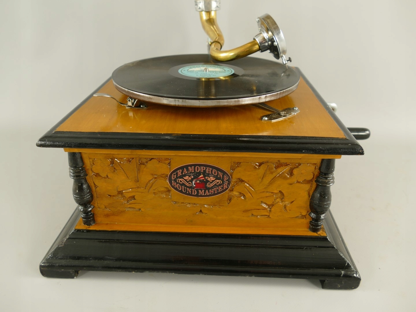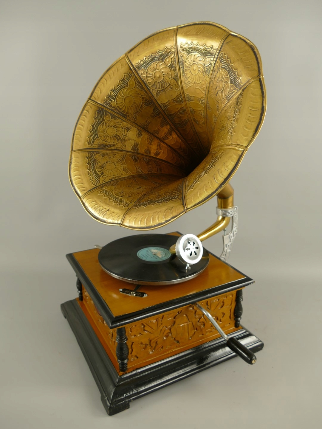 ГРАМОФОН - ПАТЕФОН - КВАДРАТНА різьблена ТРУБОВА ДЕРЕВ'ЯНА Скринька