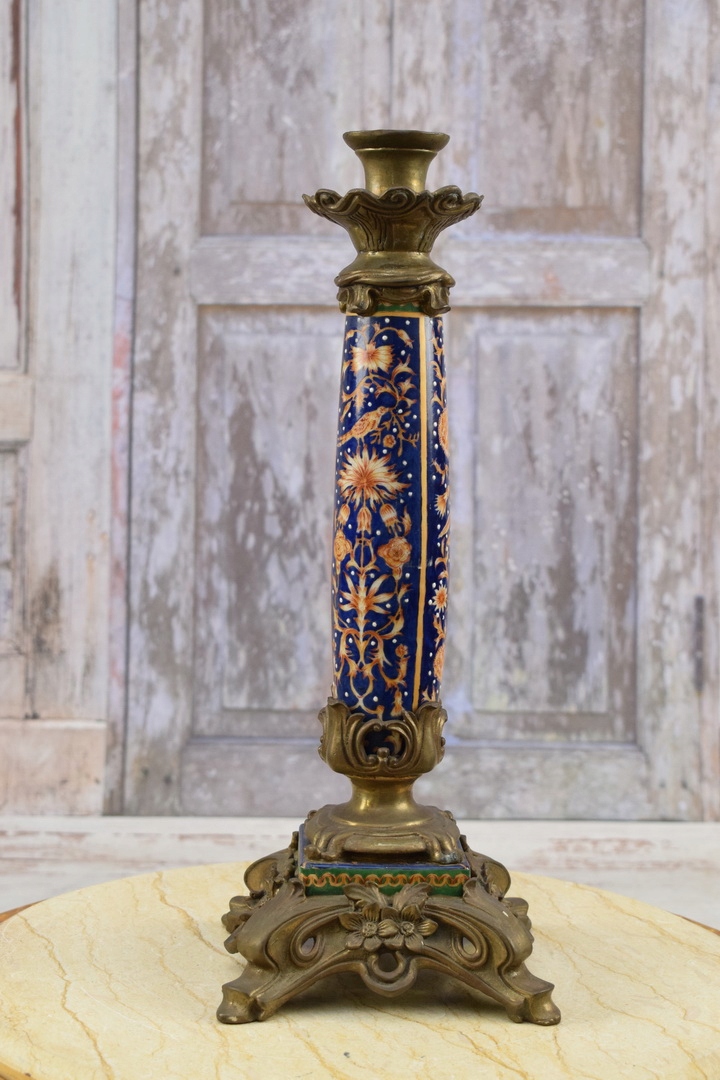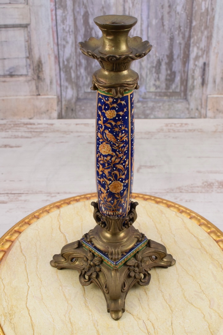 Темно -синий подсвечник + фарфор - отделение - уникальное