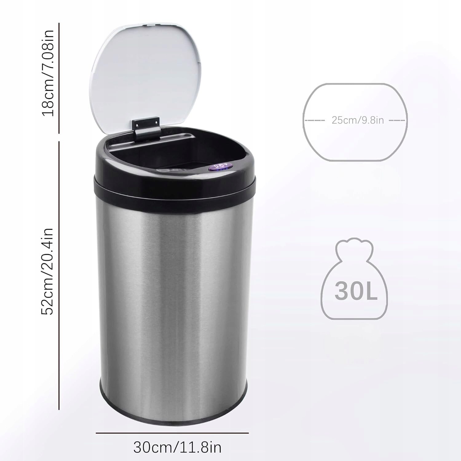 АВТОМАТИЧЕСКИЙ БЕСКОНТАКТНЫЙ МУСОРНЫЙ БОР GRANDMA SHARK 30 Л НЕРЖАВЕЮЩАЯ СТАЛЬ