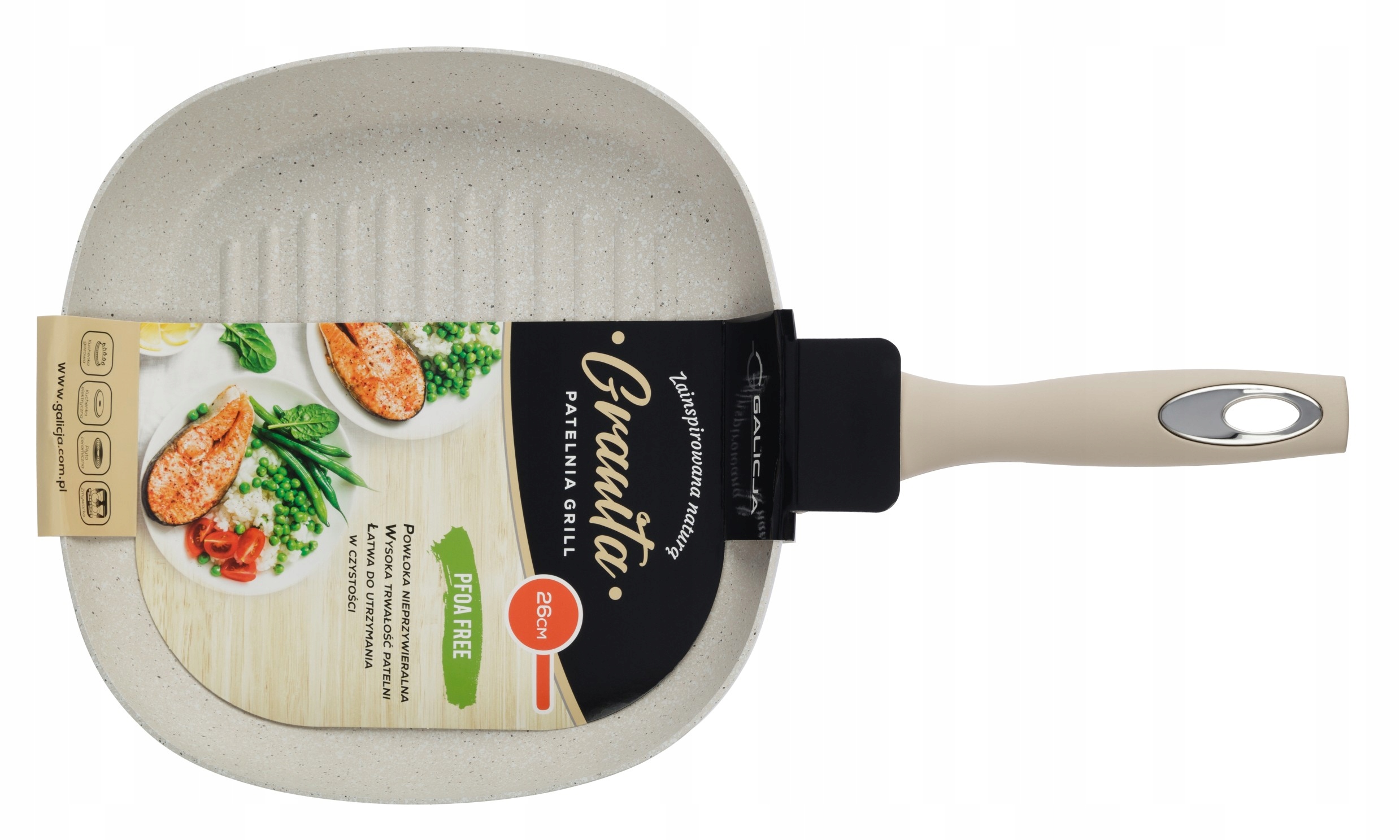 Для простоты использования сковорода была разработана таким образом, чтобы обеспечить эргономичную ручку, которая гарантирует комфорт даже во время длительного приготовления. Гранитная кастрюля для гриля может использоваться на всех типах плитов, включая индукцию, а также в духовке. Благодаря этому вы можете легко приготовить несколько блюд, от вкусного мяса до здоровых овощей.