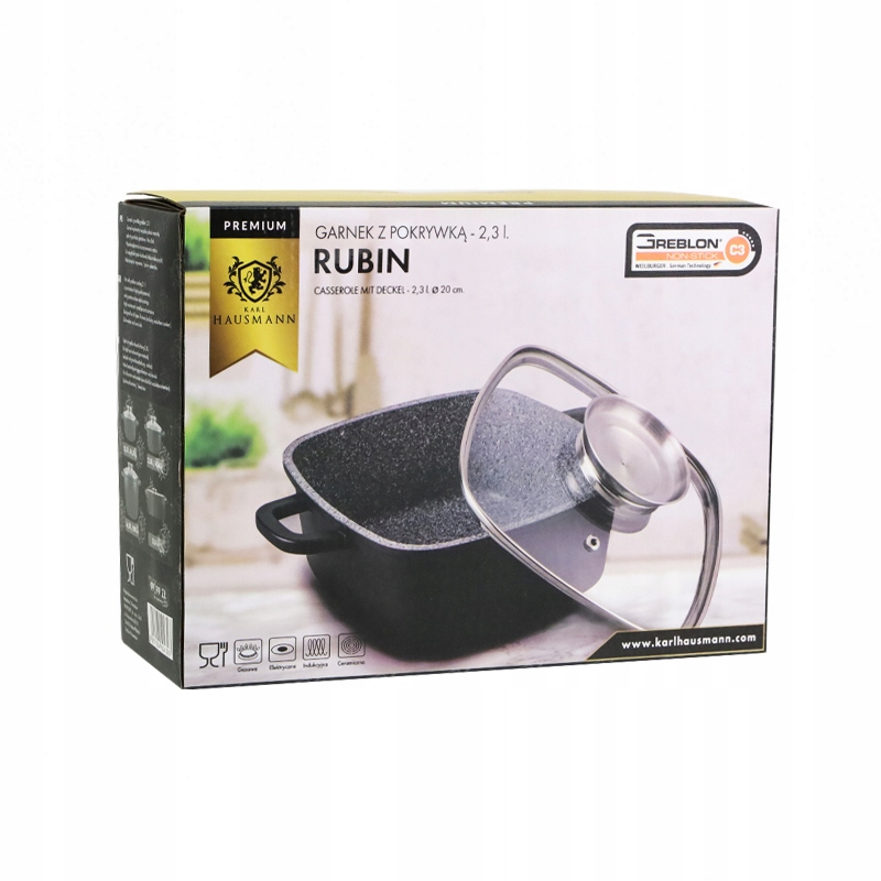 Внутренняя часть кастрюль покрыта антипригарным покрытием GREBLON C3. Это трехслойное покрытие, усиленное керамикой, что гарантирует долговечность нашей посуды. Покрытие характеризуется чрезвычайной твердостью, исключительной устойчивостью к царапинам и истиранию.