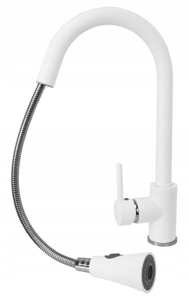 2️⃣Смеситель для кухни SNAKE с выдвижным изливом, БЕЛЫЙ