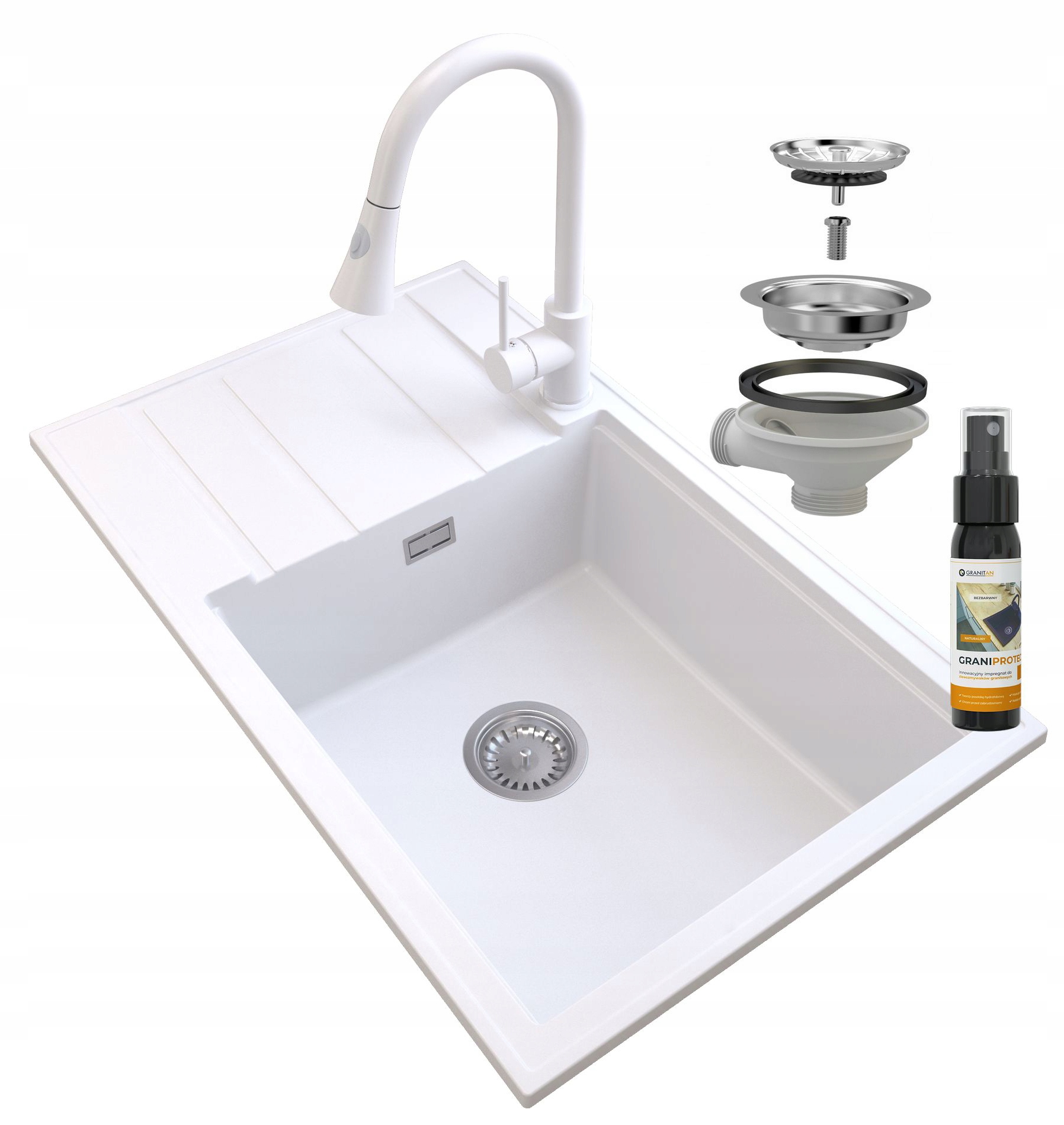ГРАНИТНАЯ РАКОВИНА БЕЛАЯ LOUIS SIPHONE CHROME BAT SNAKE