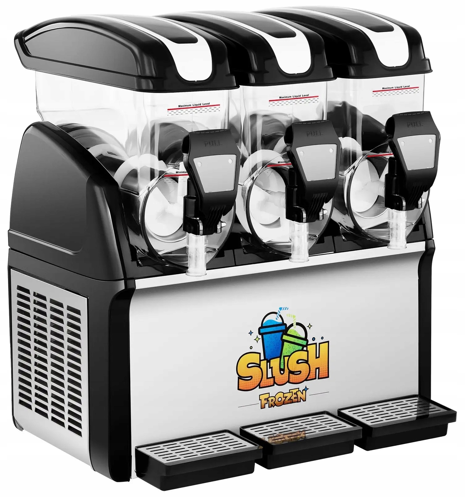 , но и фруктовые напитки, коктейли и даже сорбеты. Вот почему сляковая машина имеет три 15 -литровых контейнера с охлаждением от -3 до -2 ° C и отдельными смесителями. Это означает, что вы предложите три различных типа напитков одновременно или смешать их, создавая новый напиток. Прозрачный материал контейнеров позволит вам эффективно представить их содержание.