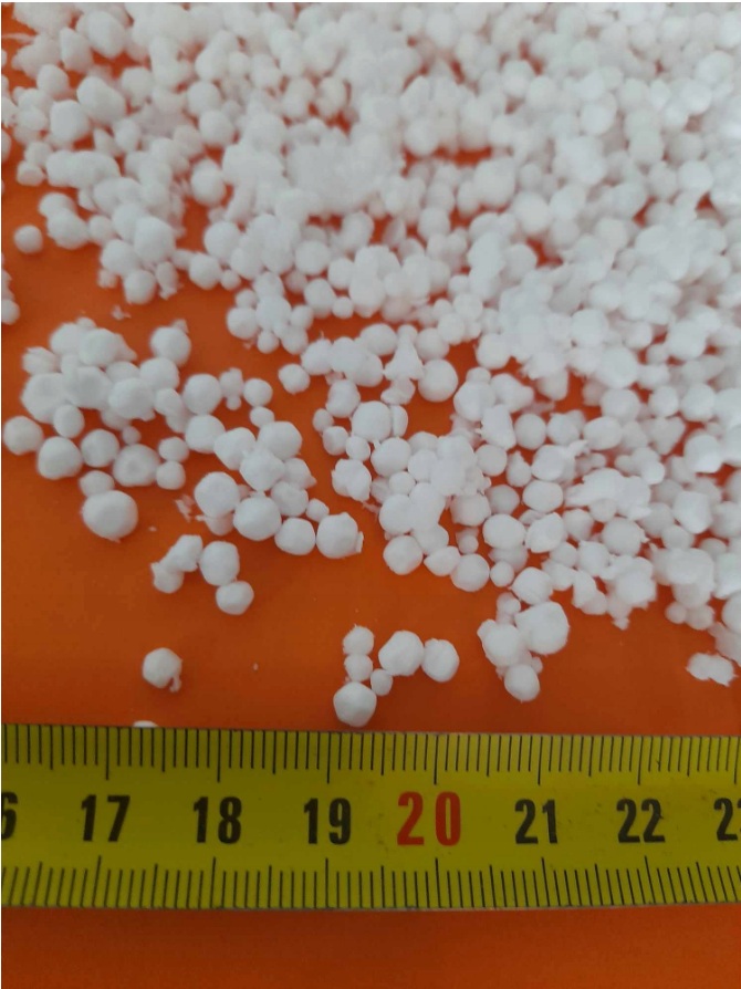 Регранулят производится из измельченного пенополистирола и не содержит примесей. Упакован в пакет и картонную коробку.