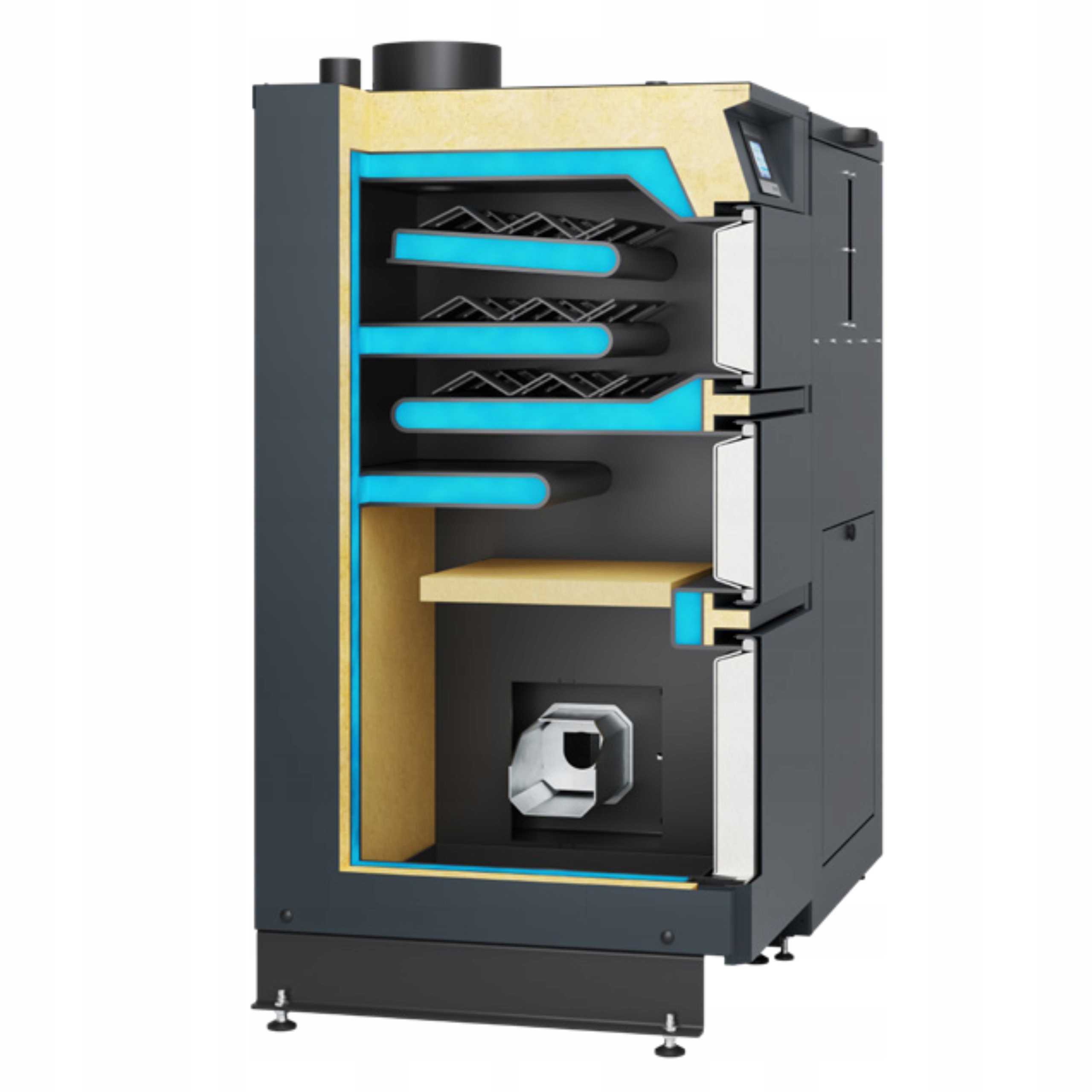 котел с автоматической горелкой, спрятанной в резервуаре для хранения топлива, имеет простой в использовании и стабильный контроллер, используемый биотопливо - гранулы 6-8 мм.