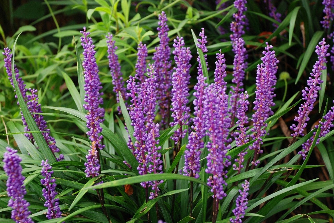 Лириоп-сапфир «Big Blue» - растение чрезвычайно долговечное , подходит для многих приложений. Он принадлежит семье Мясника и родом из Китая и Японии. Образует комки ланцетных, темно-зеленых, вечнозеленых, блестящих листьев, похожих на листья травы. Высота растения 25 см, ширина 40 см. темно-зеленые листья. В середине лета появляются многочисленные голубые соцветия – они напоминают виноградные гиацинты. В случае мягкой погоды цветы на растении могут развиваться до поздней осени. Цветет с июля по декабрь (если погода благоприятная). Обычно растения можно делить и пересаживать каждые 3-4 года, но в этом нет необходимости. Ранней весной растения, растущие группами, можно скосить газонокосилкой, чтобы очистить их, прежде чем они снова начнут расти после зимы.
