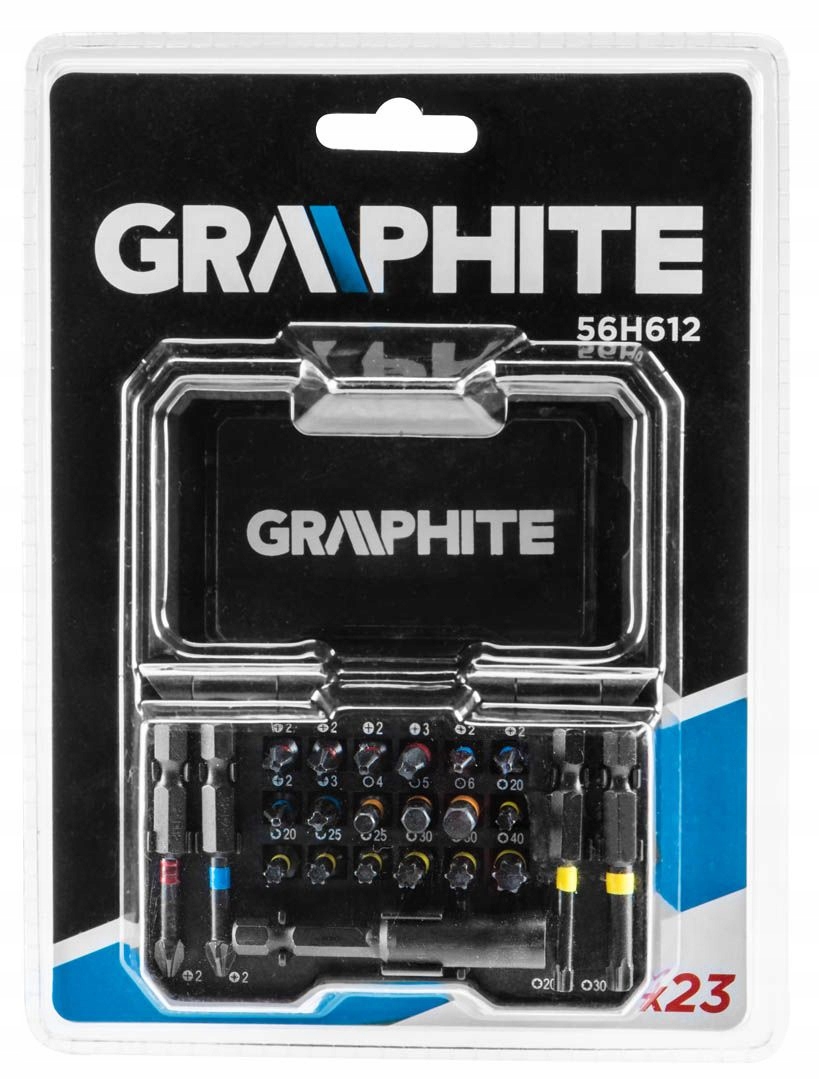 Маленький, компактный набор насадок из ГРАФИТА (арт. 56H612). Зауженные биты сгибаются и ограничивают усилие затяжки – защищают от поломки винта.