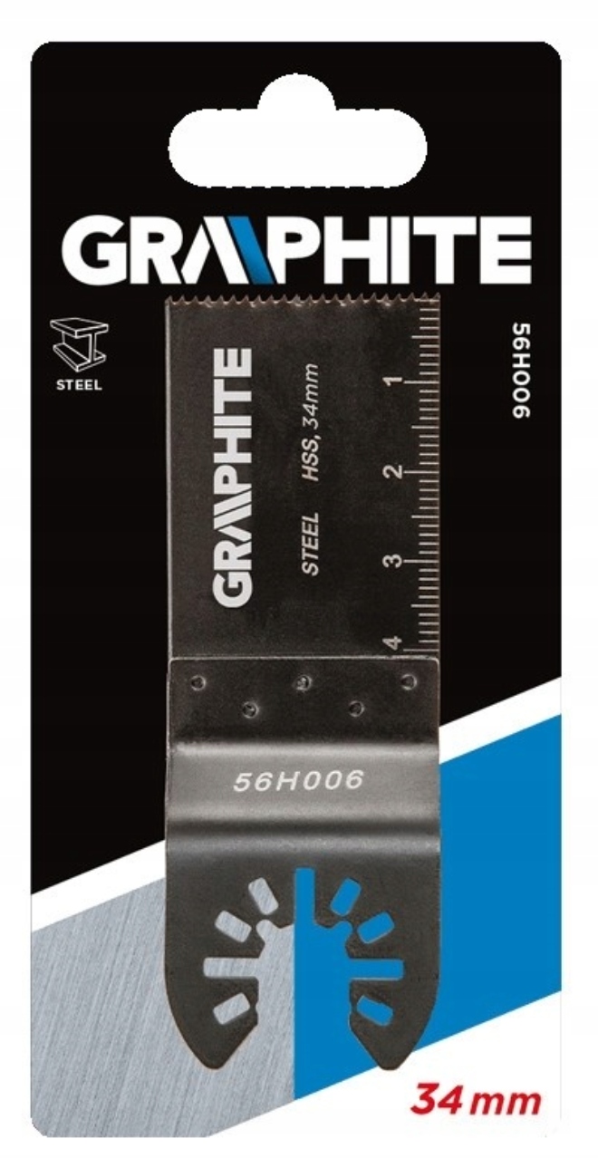 ГРАФИТОВОЕ плоское пильное полотно (арт. 56H006) шириной 34 мм, изготовлено из быстрорежущей стали. Позволяет резать металлические элементы с помощью мультиинструмента ГРАФИТ.