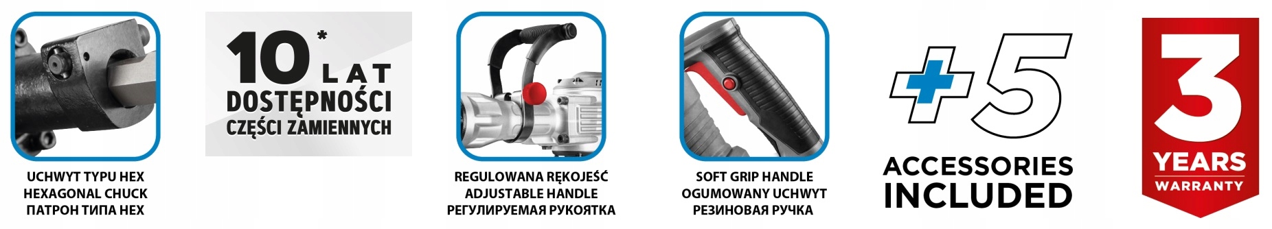 Просматривая «GRAPHITE Відбійний молоток 1700 W 30 мм 45 J HEX», вы можете быть уверены, что данный товар из каталога «Отбойные молотки» будет доставлен из Польши и проверен на целостность. В цене товара, указанной на сайте, учтена доставка из Польши. Внимание!!! Товары для Евросоюза, согласно законодательству стран Евросоюза, могут отличаться упаковкой или наполнением.