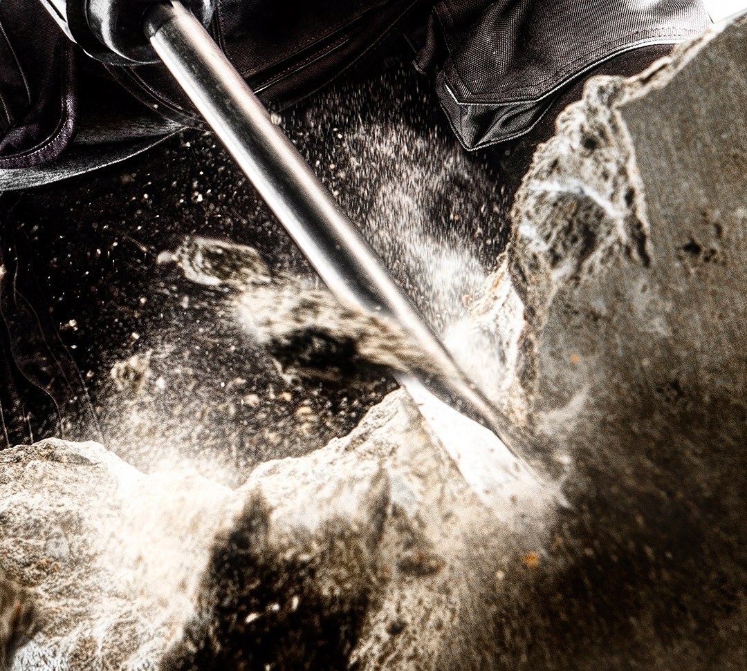 Инструмент оснащен практичным шестиугольным держателем инструмента. 30 мм, что рекомендуется для работы с материалами повышенной твердости. Покрытый нескользящим материалом, он надежно лежит в руках и обеспечивает надежный захват. Дополнительная рукоятка позволяет удобно регулировать положение под любым углом, повышая комфорт и безопасность использования.