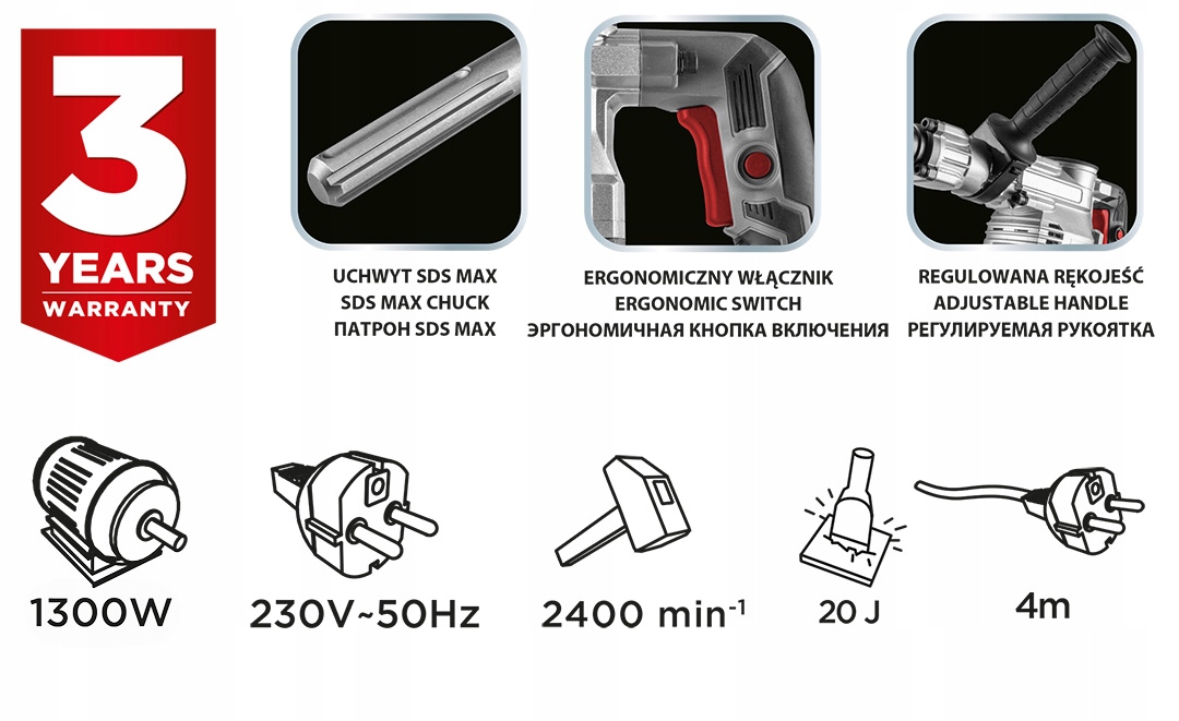 Просматривая «GRAPHITE Відбійний молоток SDS Max 1300W 58G877», вы можете быть уверены, что данный товар из каталога «Отбойные молотки» будет доставлен из Польши и проверен на целостность. В цене товара, указанной на сайте, учтена доставка из Польши. Внимание!!! Товары для Евросоюза, согласно законодательству стран Евросоюза, могут отличаться упаковкой или наполнением.