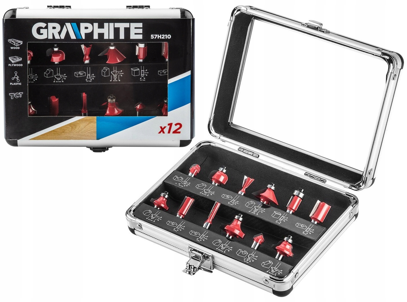 GRAPHITE Zestaw frezów widiowych 12szt do drewna trzpień 8mm FREZY 57H210