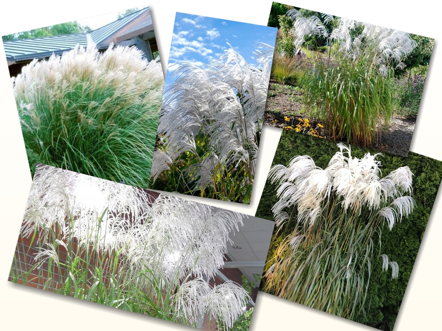 Трава мискантуса – образует довольно крупные, компактные дерновинки, состоящие из узких, длинных, жестких листьев, слегка свисающих наружу. Край листовой пластинки покрыт острыми зубцами, что может привести к повреждению кожицы, если не соблюдать должный уход во время ухода.По сравнению с другими травами это довольно высокорослый сорт – обычно вырастает до 2-3 м в высоту. Цветет перистыми соцветиями в конце лета и осенью.. Прекрасно смотрится в грунте или в больших горшках на террасах. Интересно смотрится на фоне газона или рядом с водоемами. Побеги часто используют для украшения букетов.
