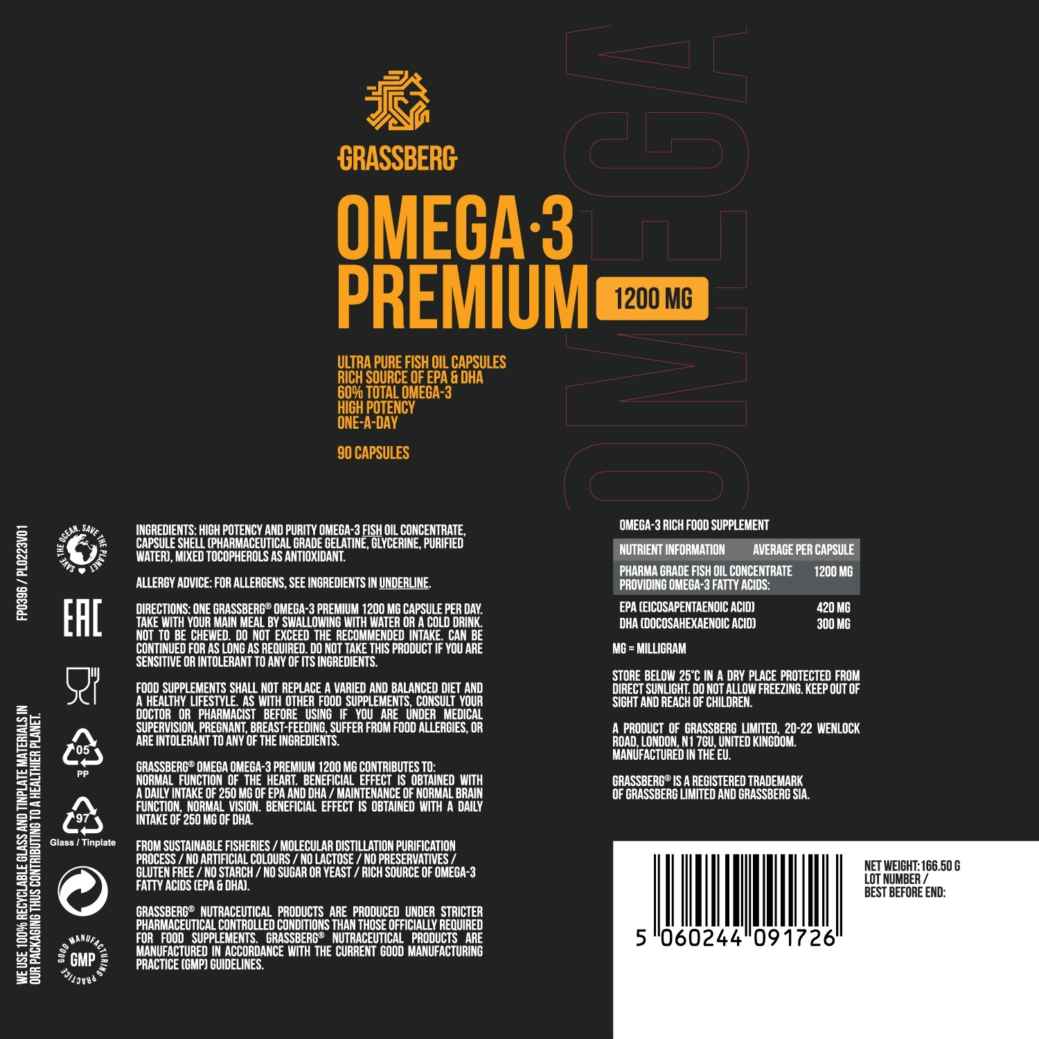 Grassberg Omega-3 Premium 1200 мг — 90 таблеток омеги