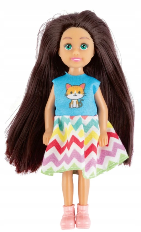 ✔ Мама - элегантная кукла с длинными каштановыми волосами, одетая в очаровательное розовое клетчатое платье и белые туфли.