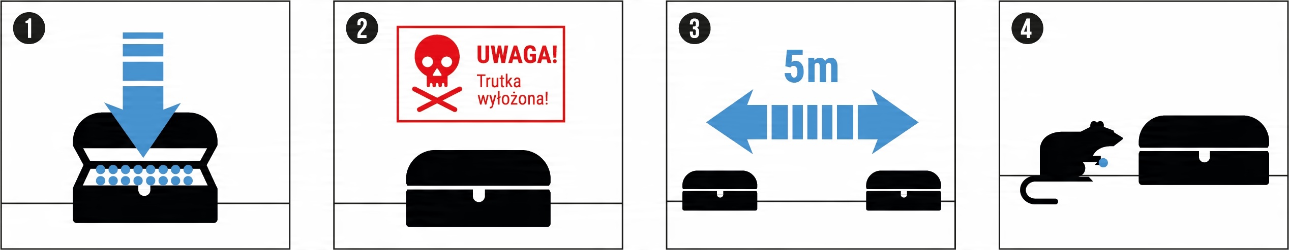 Станции с родентицидами следует размещать в недоступном для детей и домашних животных< /б>. Также следует помнить, что станции должны защищать отравитель от неблагоприятных погодных условий. Минимальное расстояние между станциями должно составлять 5 м.