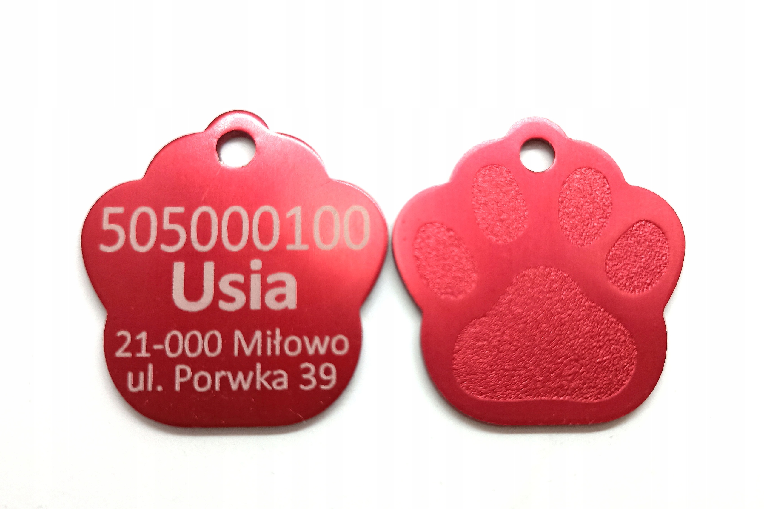 Бейдж изготовлен из анодированного алюминия очень хорошего качества. Гравировка перманентная, односторонняя, выполнена с помощью СО2-лазера. Каждая идентификационная бирка имеет металлическое кольцо для крепления к ошейнику.