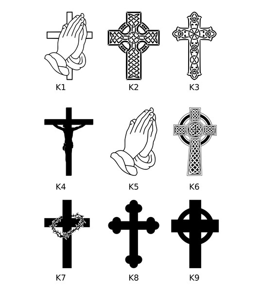 - Графика: ангел вверху (как на фото), растительные мотивы, рамка; возможны другие символы (например, крест)