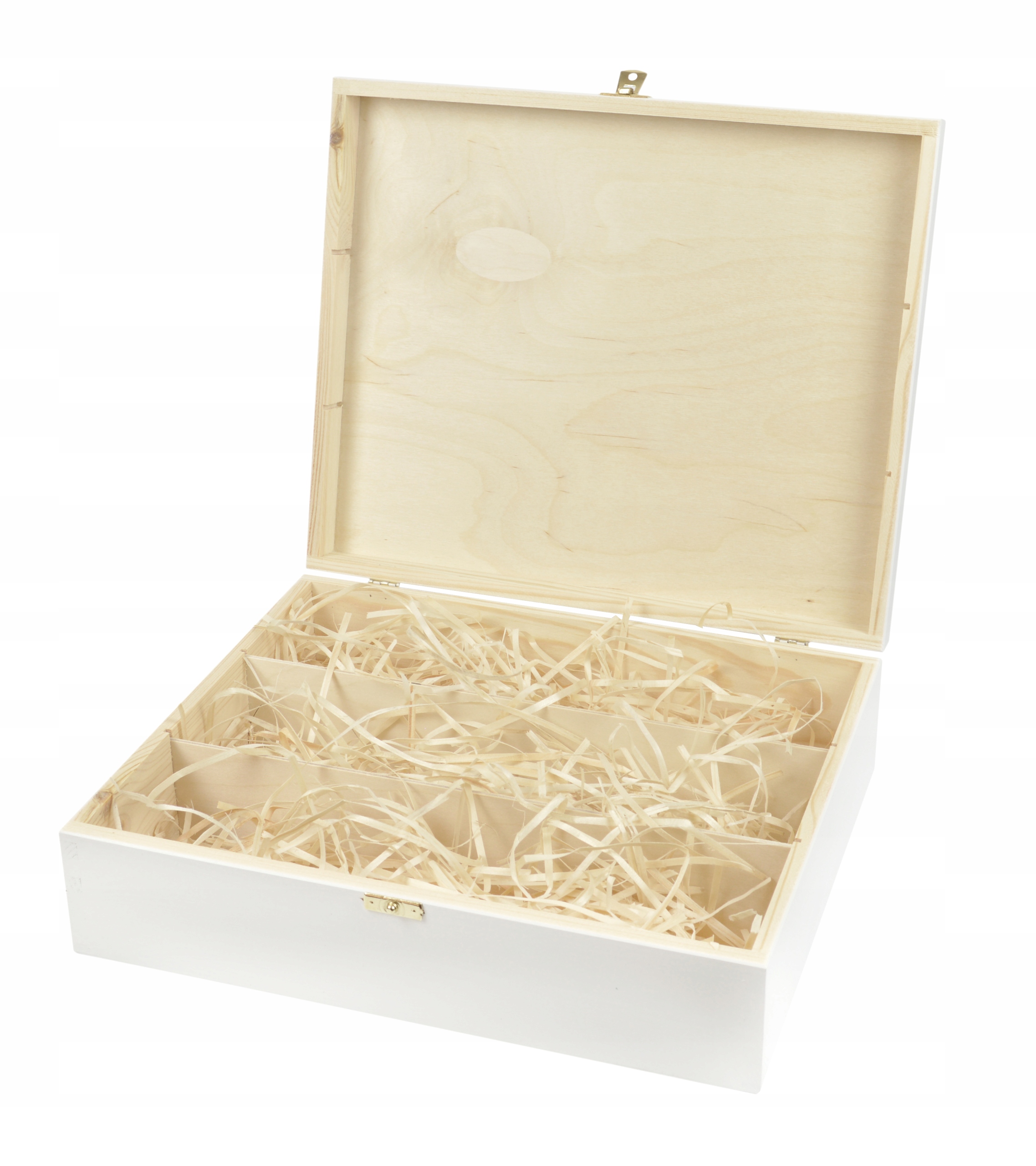 - Ящик с тремя отделениями из древесины сосны и белой фанеры,