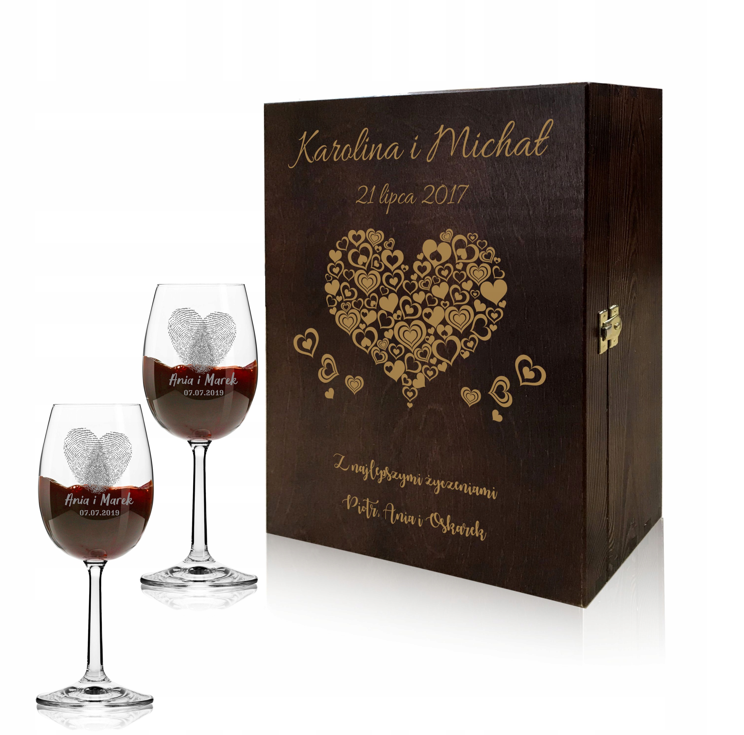 Представляем коробку для вина с двумя бокалами по 250 мл. Наш товар станет прекрасным подарком на свадьбу, день рождения или особый случай. Элегантный дизайн шкатулки и персонализированная гравировка идеальны как благодаря родителям, так и свидетелям. Удивите своих близких уникальным подарком – нашим персонализированным набором. Дополнительно каждая коробка наполнена древесной шерстью, благодаря чему ее содержимое выглядит еще более эффектно.