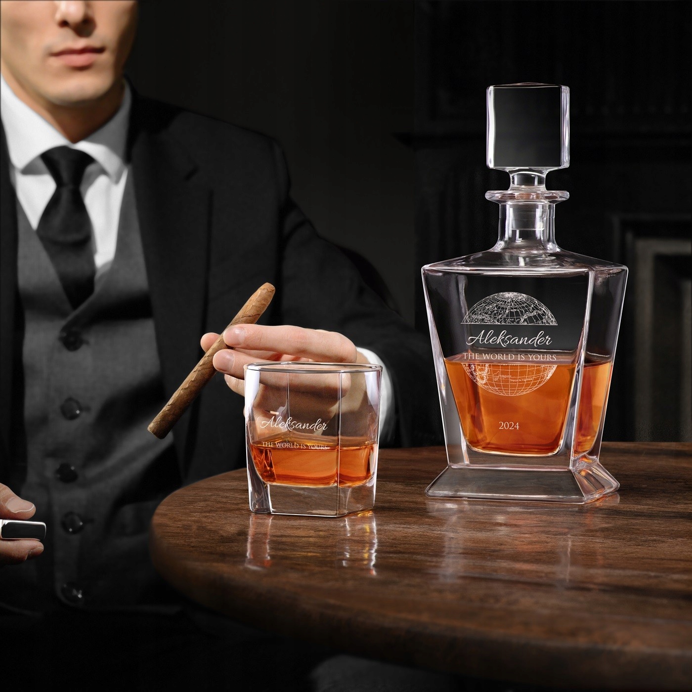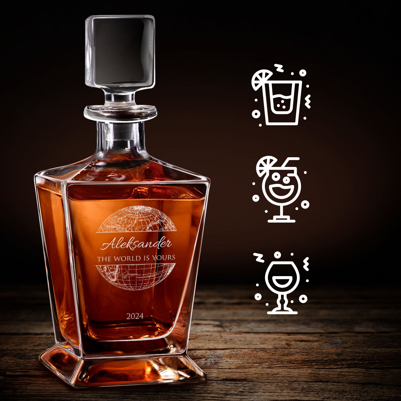 Представьте, как впечатляюще выглядит набор для виски с тонкой, элегантной гравировкой, занимающий почетное место в вашем домашнем баре.