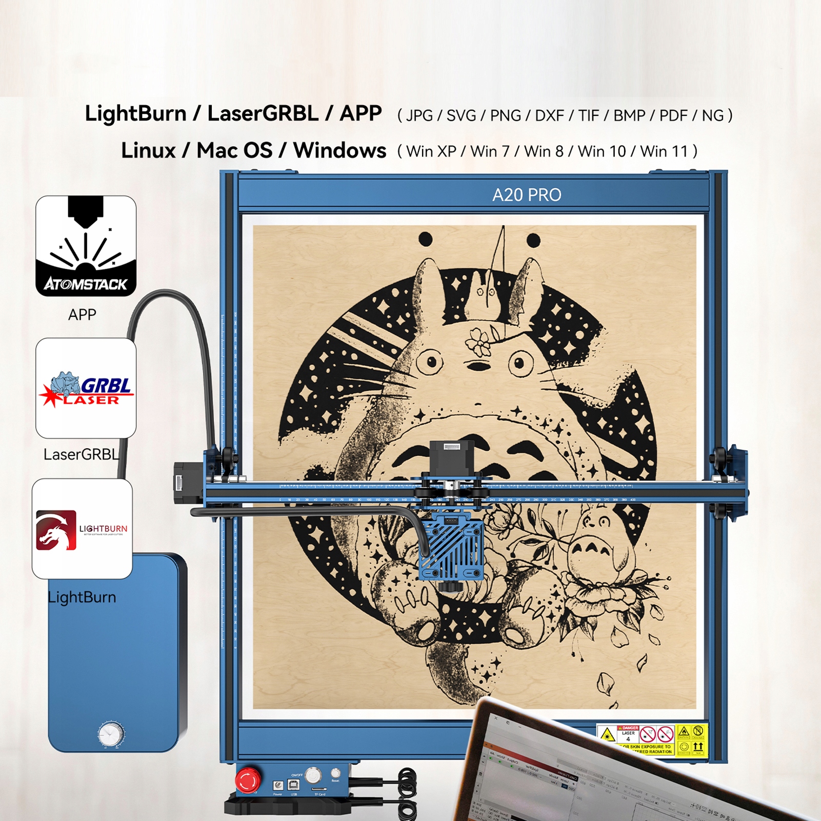 Операционное программное обеспечение: LaserGRBL, LightBurn, поддержка Win XP/Win 7/Win 8/XP/Win 10.