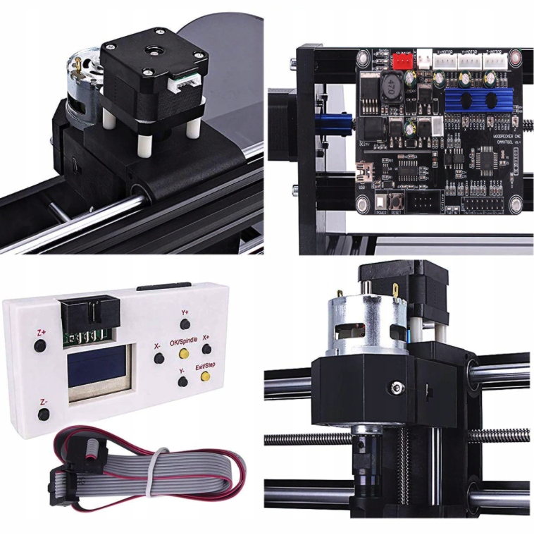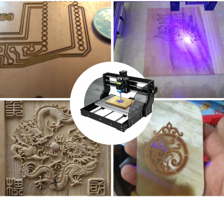 Этот гравировальный станок с ЧПУ оснащен тремя шаговыми двигателями и шпиндельным двигателем 24 В 775 (12-36 В) со скоростью вращения 10000 об/мин. Кроме того, доступен дополнительный лазер мощностью 5,5 Вт с длиной волны 405 нм. Гравировальный станок поддерживает Windows XP SP3, Win 7, Win 8, Win 10 (32/64) и другое программное обеспечение для прямого импорта файлов JPG, BMP, PNG, DXF для гравировки.
