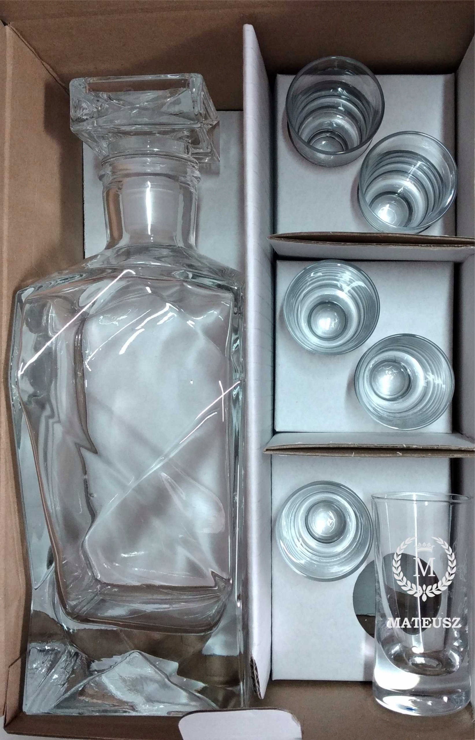 Тема аукциона - это набор, состоящий из сломанного карафа и шести очков с гравировкой, упакованной в белую коробку с отсеками внутри. Это может быть уникальным подарком для любой церемонии: например, . Knight's, Maiden вечер, свадьба или спасибо родители, день рождения, годовщина . Возможность индивидуальной гравировки сделает такой подарок уникальным. Для удобства наших клиентов мы подготовили широкий выбор дизайнов, которые ниже. Вы также можете рассчитывать на помощь в подготовке проекта.