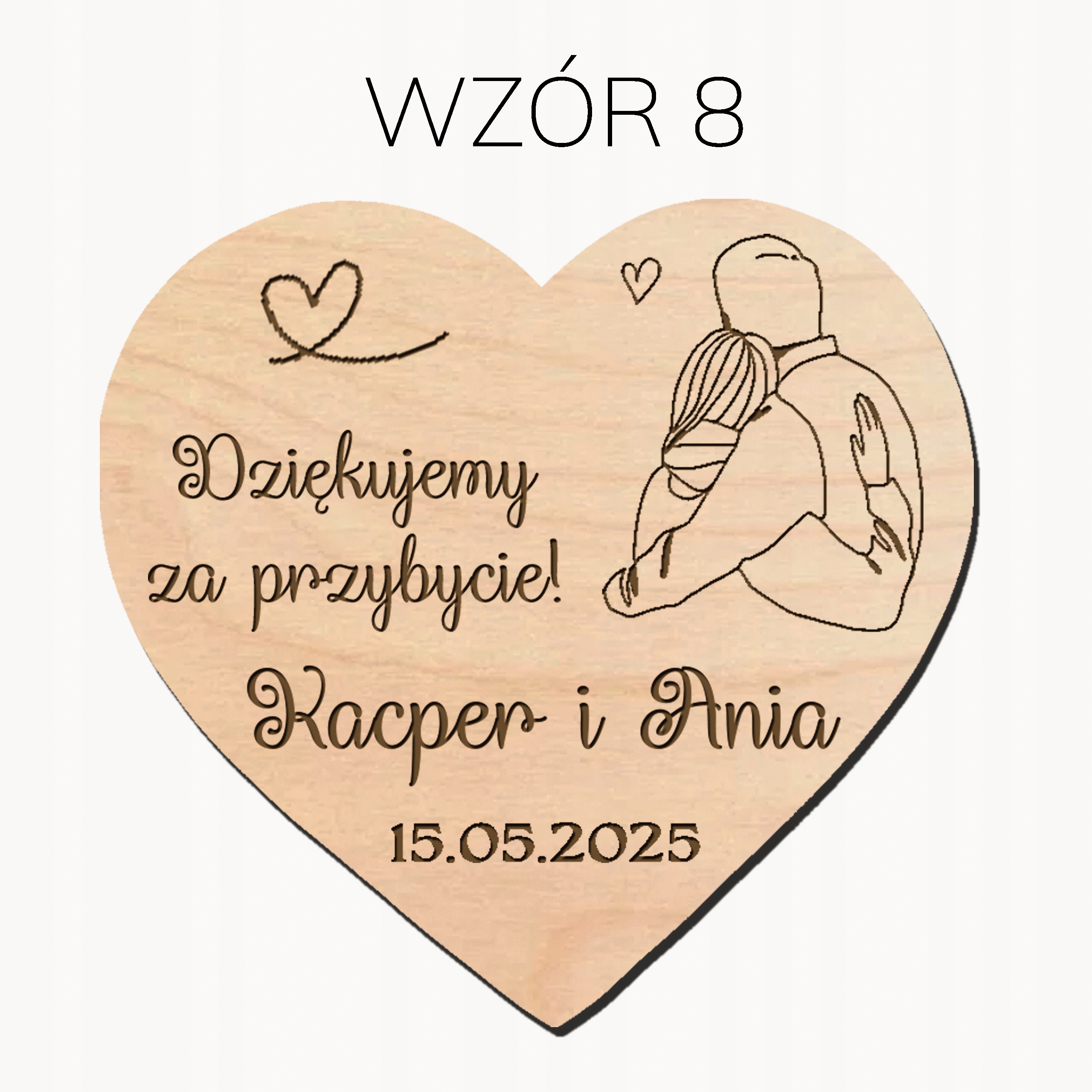 магниты изготовлены из высококачественной фанеры толщиной 3 мм, что гарантирует их долговечность и элегантный вид. На каждом магните есть красивая гравюра, которую вы можете адаптироваться к своим потребностям - например, Измените инициалы на имена - сообщите нам об этом.