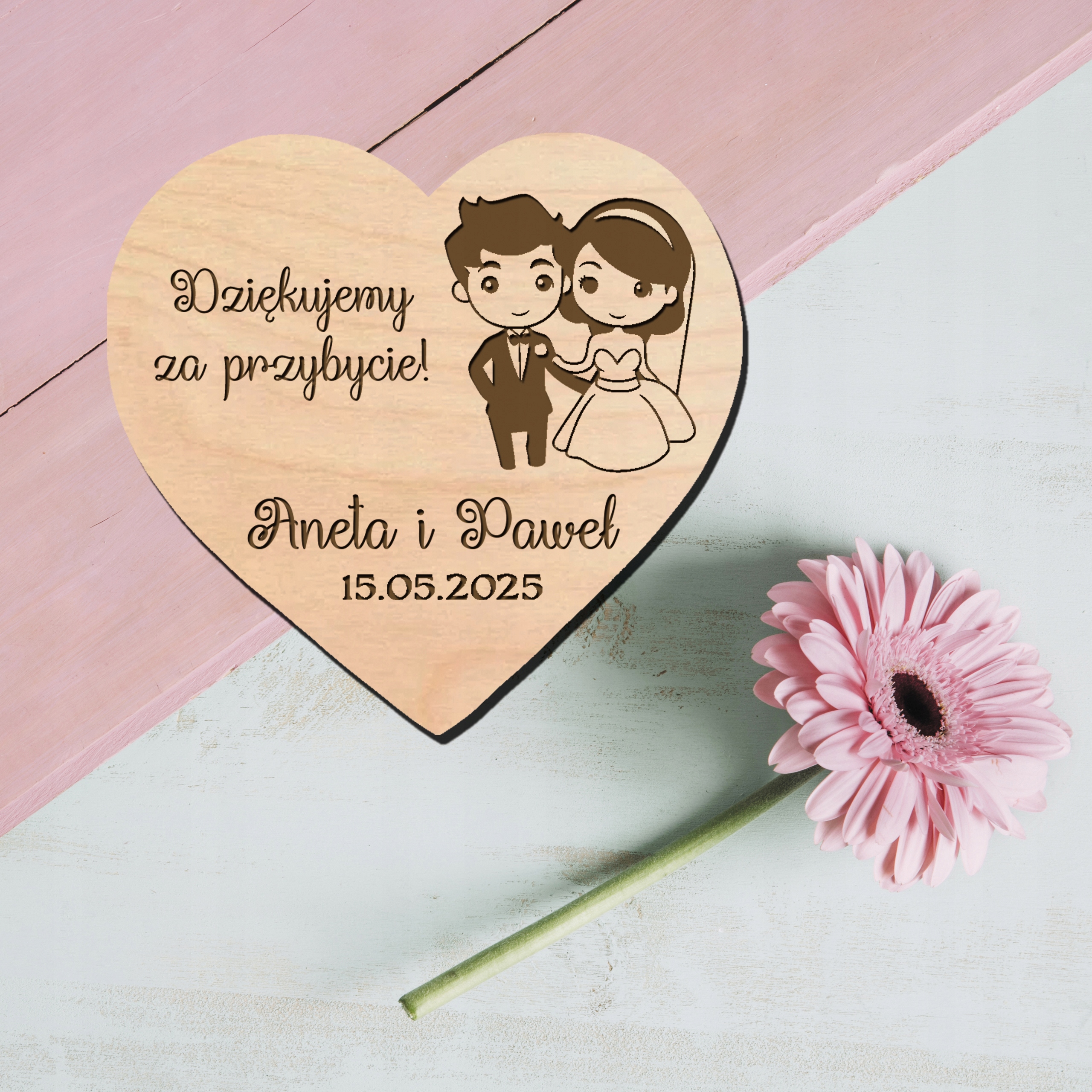 Гравировка магнитного сердца благодаря гостям за свадебный подарки подарков