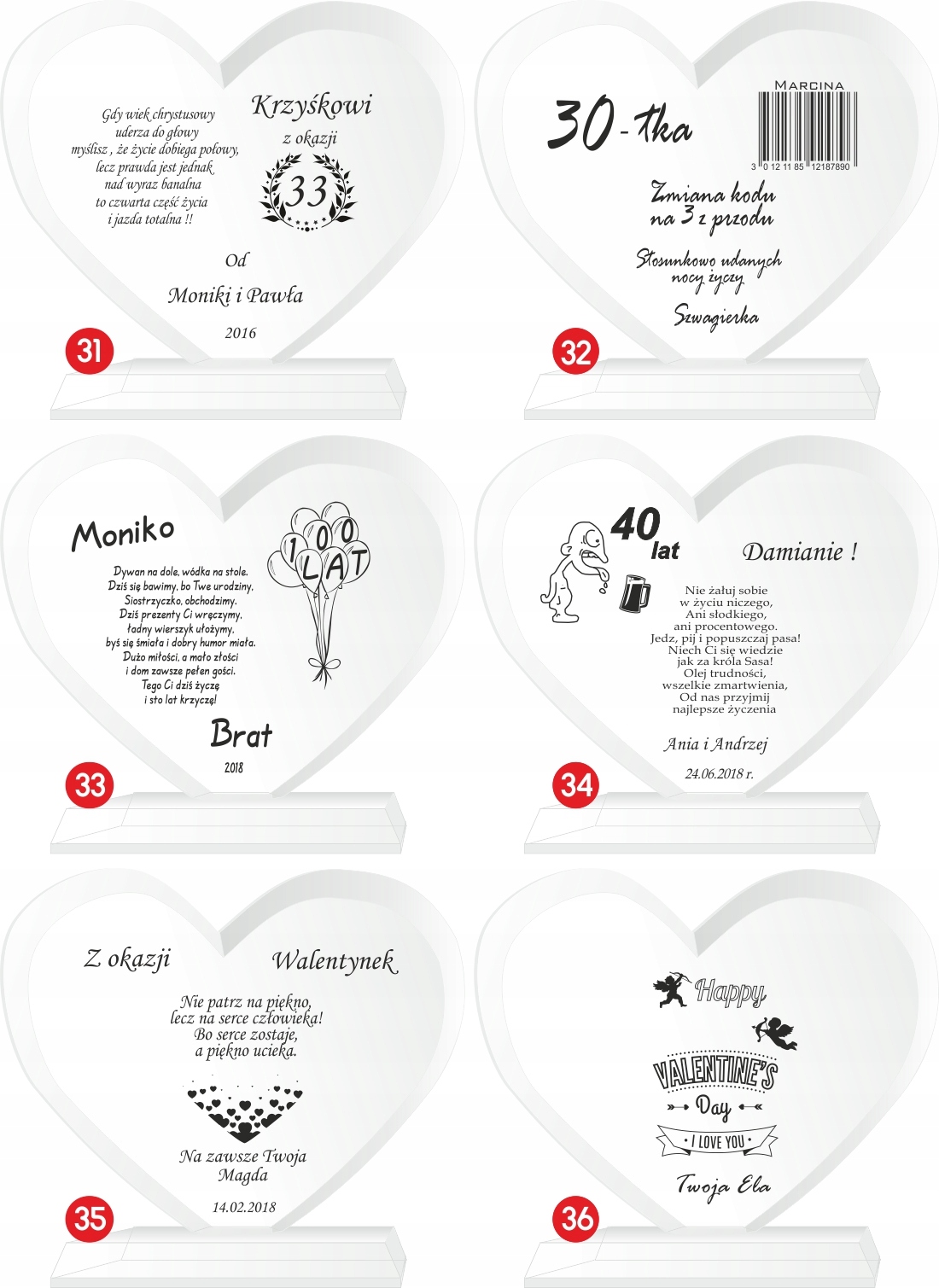 Тексты и варианты могут свободно изменяться по вашему усмотрению (тексты, отличные от представленных в наших вариантах, следует присылать в редактируемом виде, например, блокнот), а числа годовщин — это примерные значения, которыеможно изменить.
