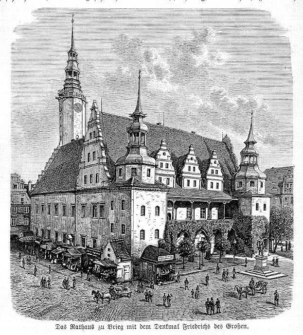 - Должность: "Das Rathaus zu Brieg mit dem Denkmal Friedrichs des Großen."