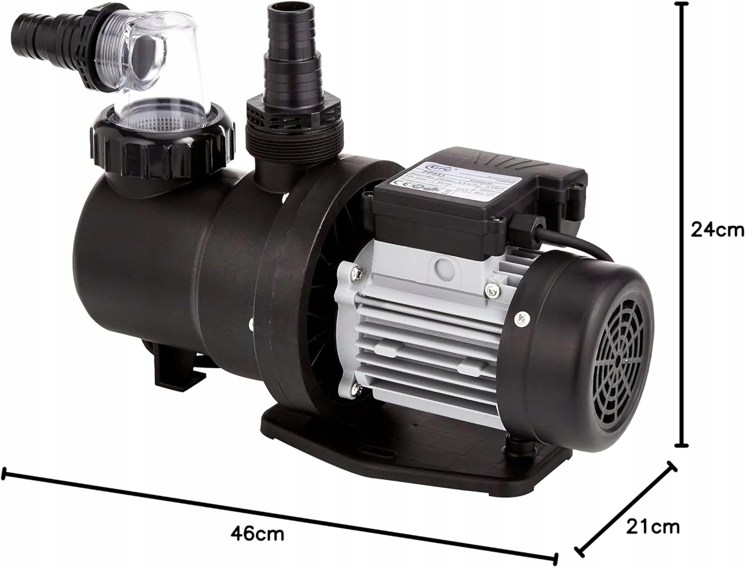 для бассейнов с емкостью до 50 м3. Для фильтрационного оборудования диаметром 400 мм; 38 мм соединения шланга. Содержит предварительный фильтр с прозрачной крышкой для сохранения больших частиц. Производительность фильтрации 8500 литров в час с мощностью 450 Вт. Одиночный насос, самостоятельный, центробежный, предназначенный для использования в системе фильтрации бассейна.