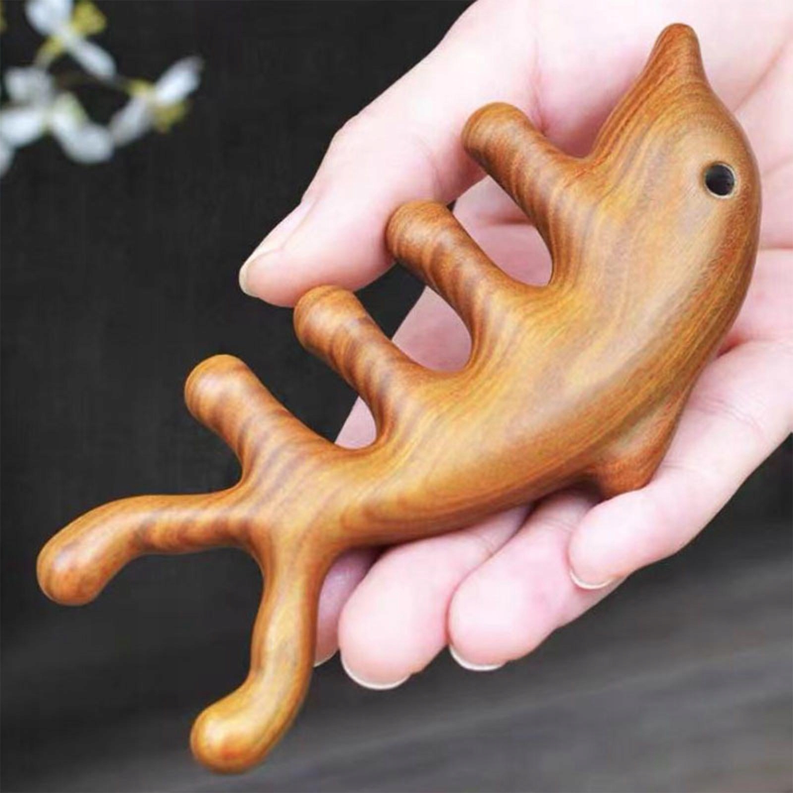 Деревянная массажная расческа от зеленого зуба широкого сандалового дерева для соскоба для ухода за волосами