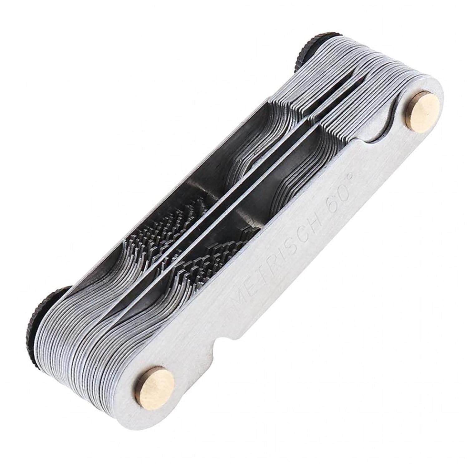 - Прецизионные лезвия: 58 лезвий из нержавеющей стали обеспечивают точные измерения как внутренней, так и внешней резьбы.