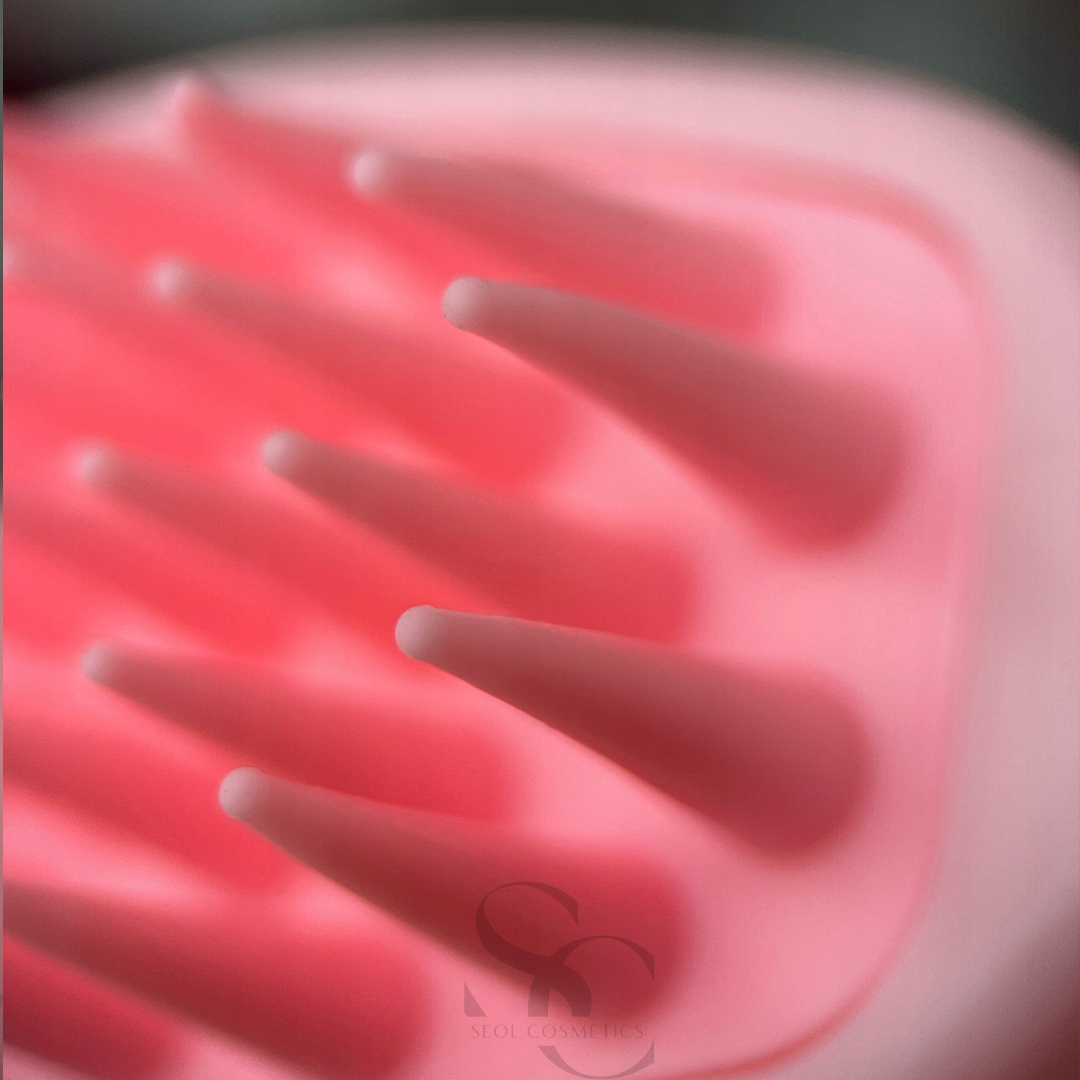 Гребінець з ручкою для вмивання, масажер, пілінг, рожевий силікон SEOL