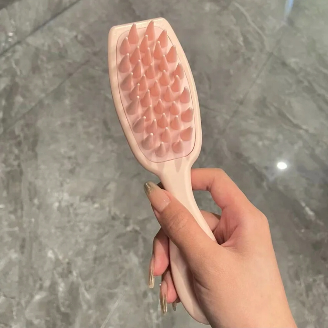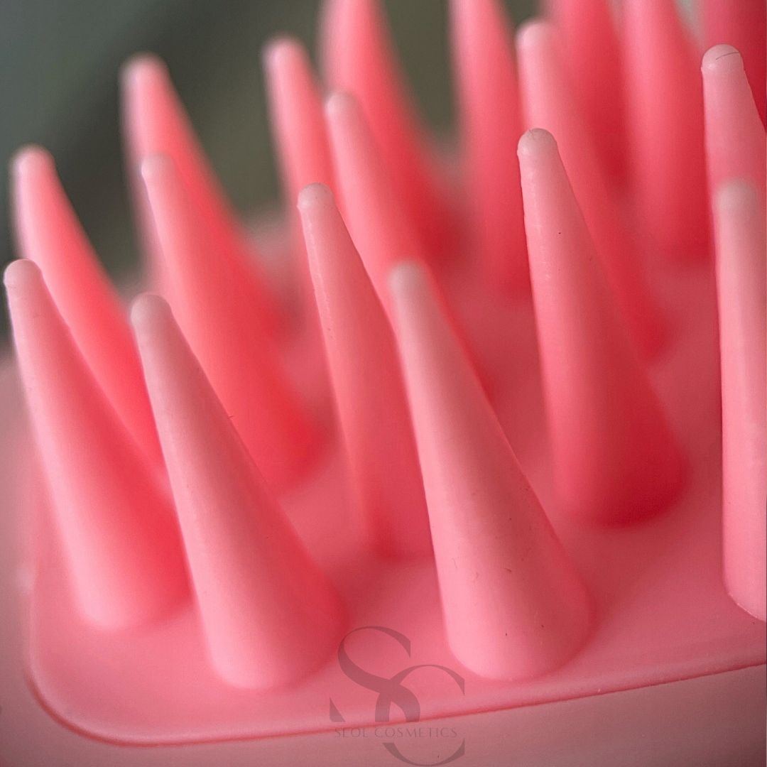 ⭐Щётка с ручкой, массажёр, пилинг, мытье кожи головы, Розовая силиконовая щётка для кожи головы – идеальна для лосьонов⭐