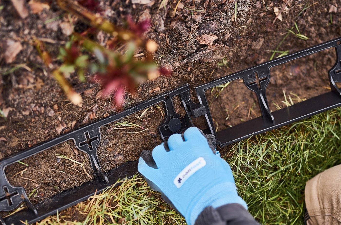 - ✅ Садовый бордюр UNIBORD™ прекрасно отделяет газон от гравийных дорожек, гравийных дорожек или брусчатки
