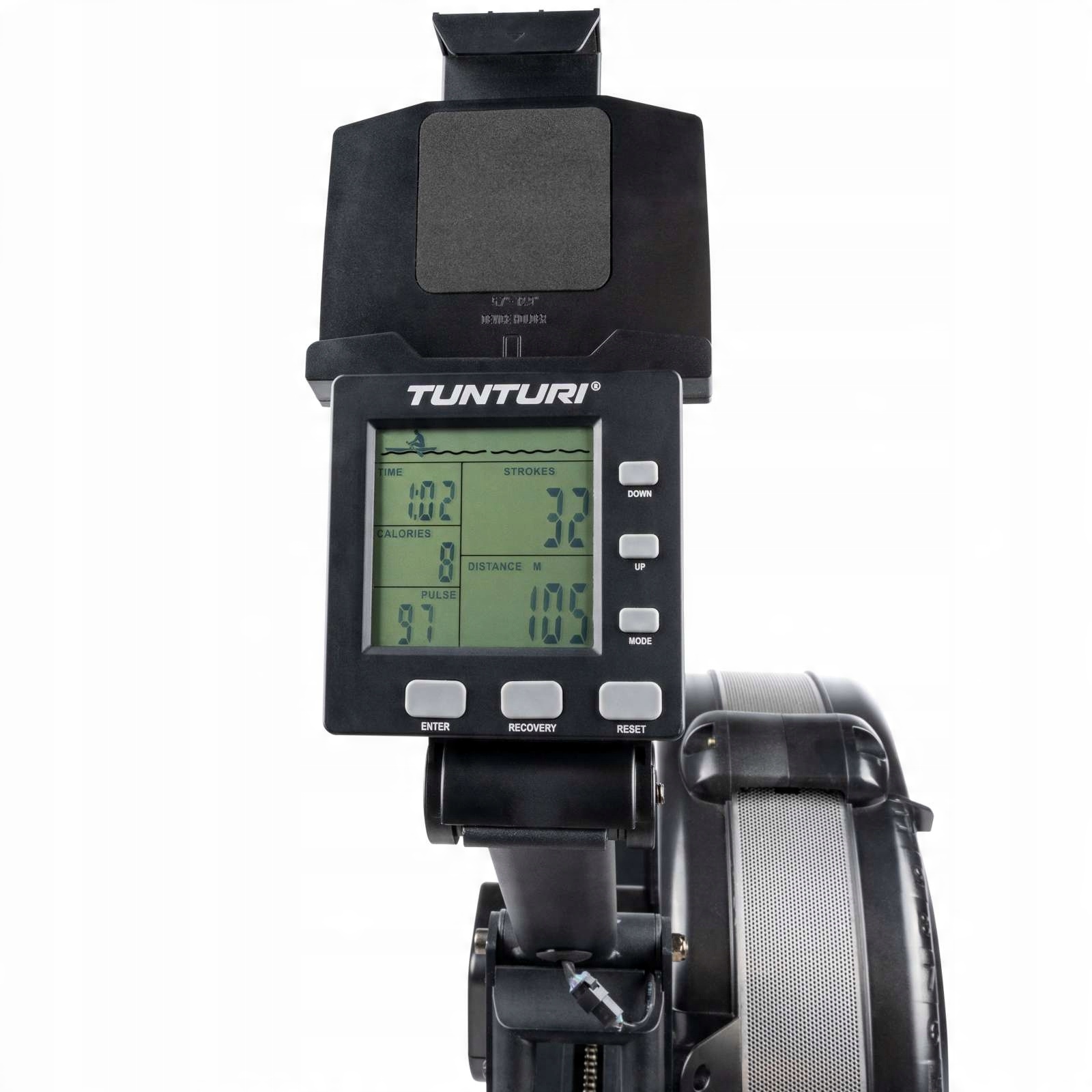 FitRow 80i предоставляет информацию обо всех важных параметрах тренировки. На ярком дисплее отображаются все важные данные тренировки, такие как время на дистанции 500 м, количество гребков в минуту, общее количество гребков, калории и мощность. Дополнительно в тренажере по гребле имеется программа регенерации, позволяющая завершить тренировку.